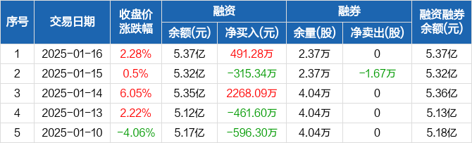 天银机电:融资净买入491.28万元,融资余额5.37亿元(01-16)