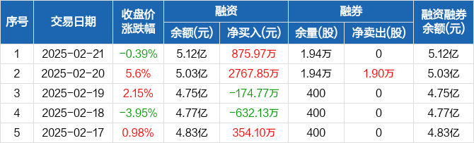 天银机电:融资净买入875.97万元,融资余额5.12亿元(02-21)