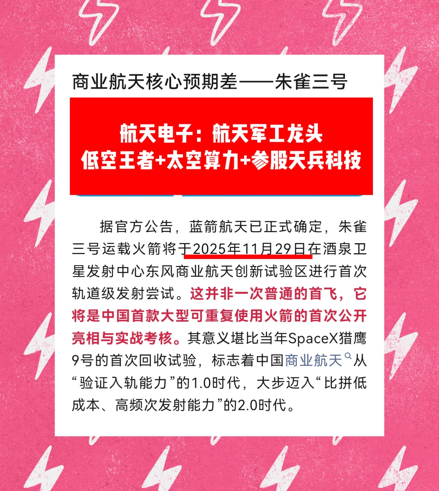 周末惊人发射,加满航天电子钱途大