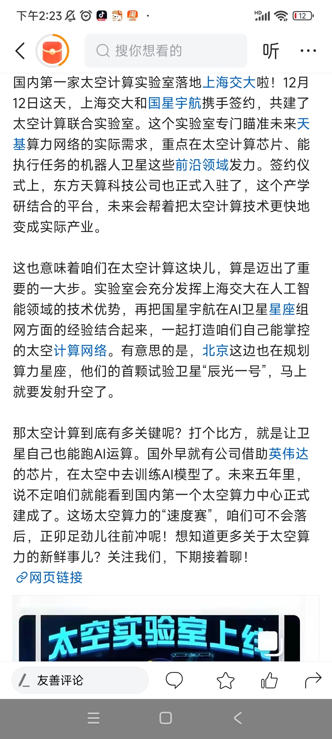 $天银机电(SZ300342)$ 上海交通大学开建中国第一个太空算力实验室,这是瞄准马斯克的spaceX的星链了