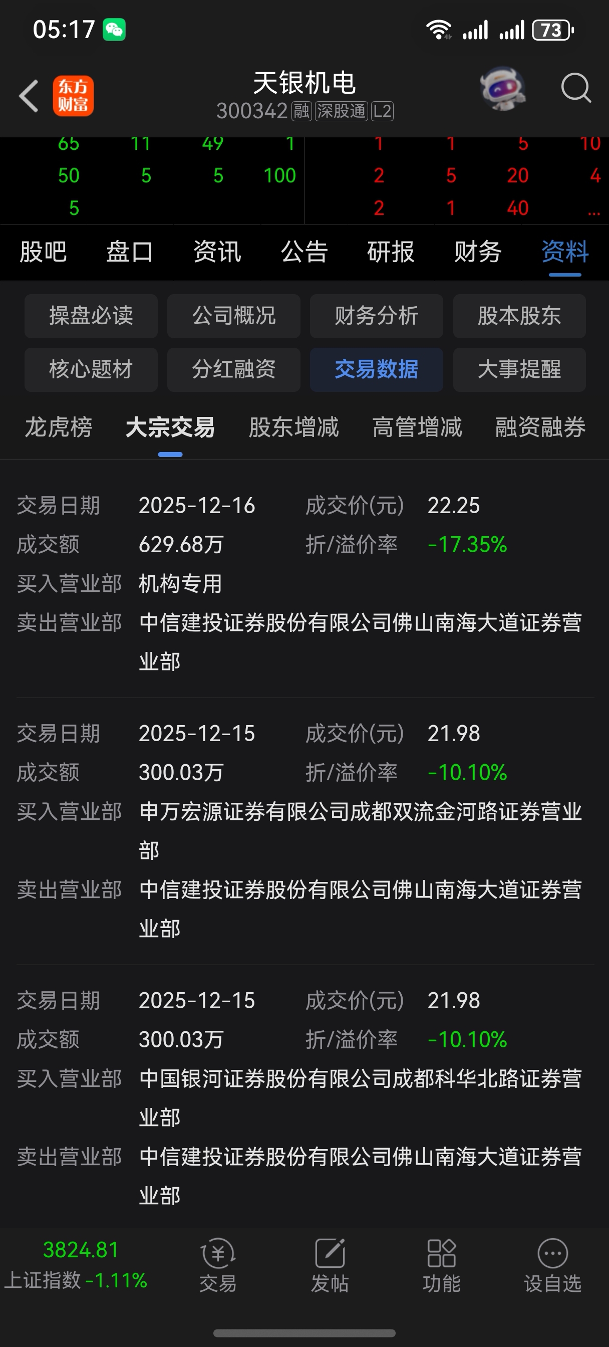 $天银机电(SZ300342)$ 大宗交易恶心,就怕他们拿折价的二级市场上获利抛售