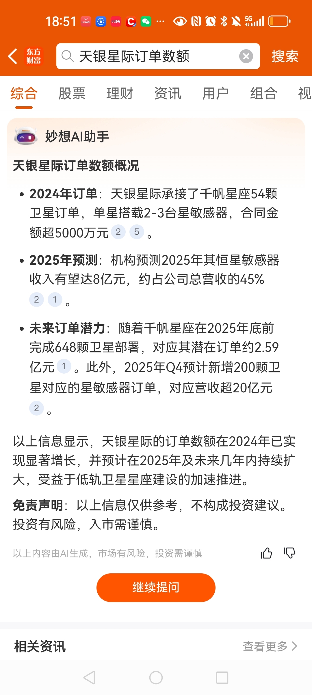 天银星际的卫星星敏感器营收将超过20亿。