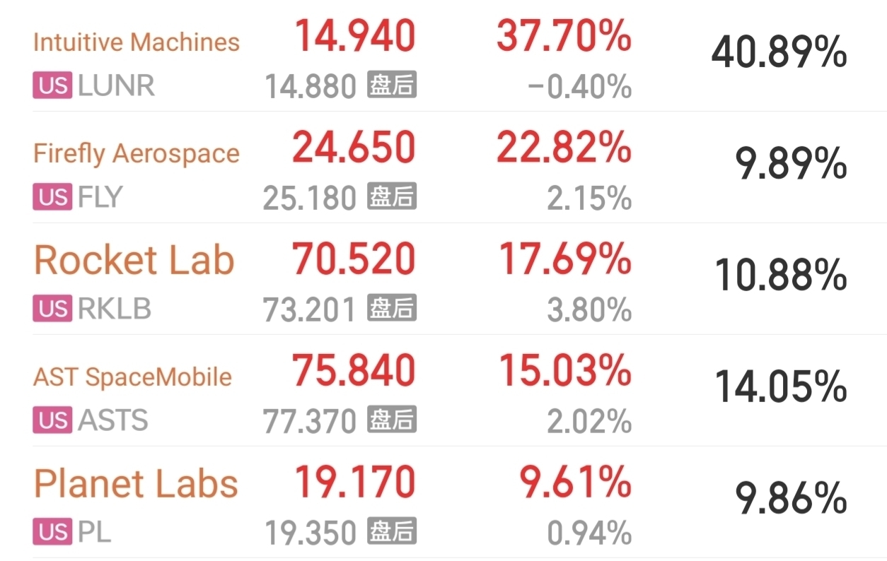 $天银机电(SZ300342)$ 美股商业航天涨破天了,周一起爆