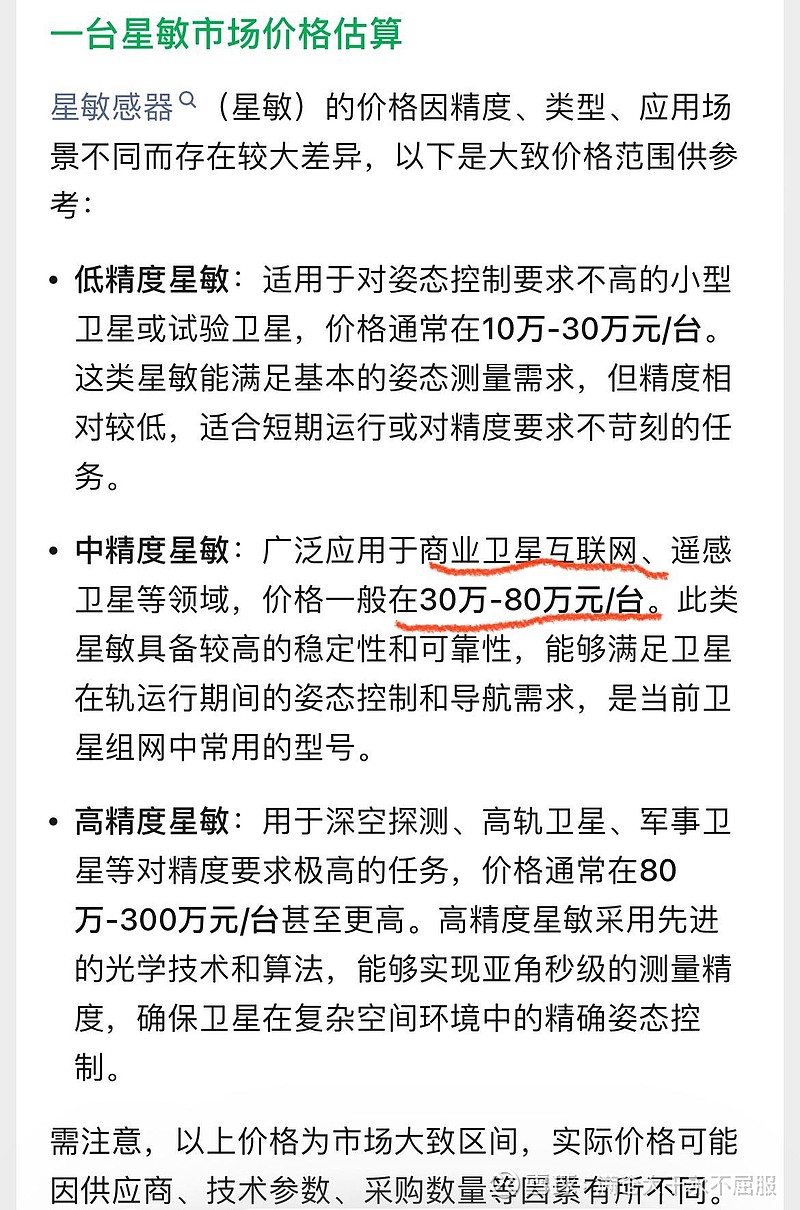 不同规格星敏价格差异很大,取决于精度要求,低轨互联网卫星星敏价格应该不低,用14万计我觉得也低了点。