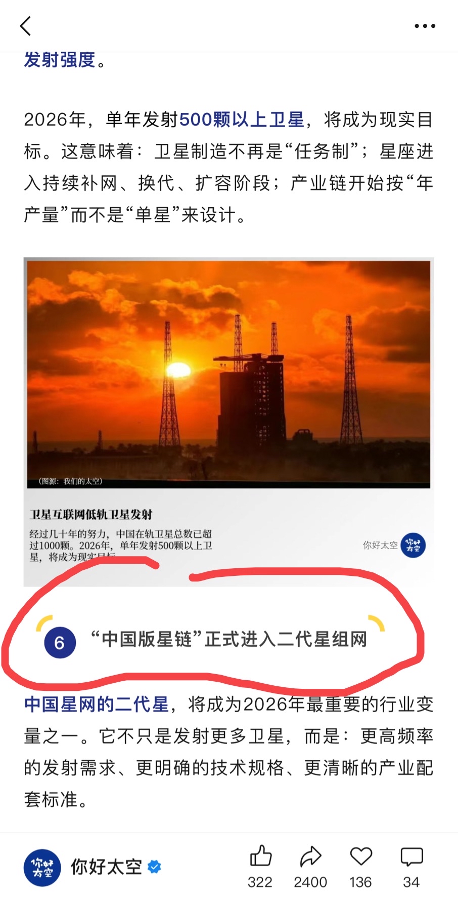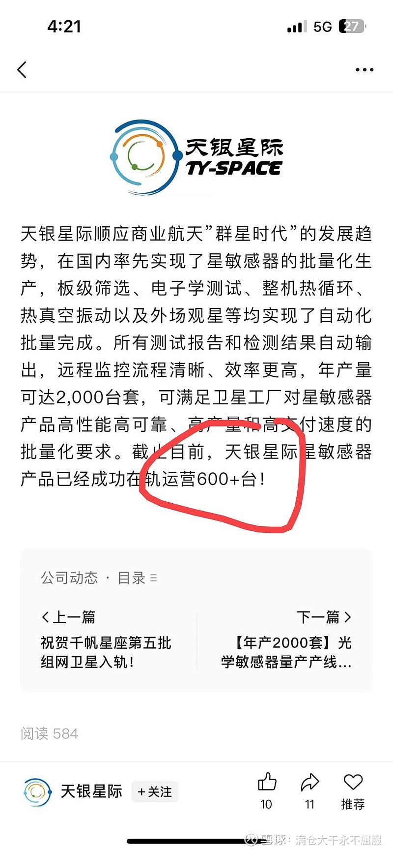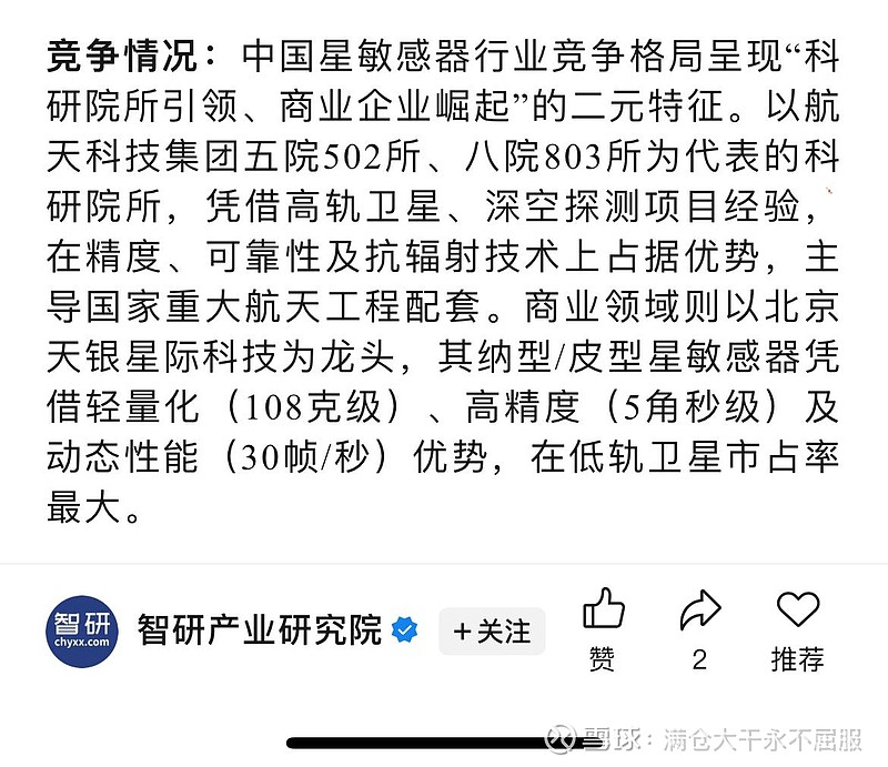 (3)有一个非常大的产业发展预期差,星链现在用的是二代卫星,国内肯定也要跟上,到时星敏需求翻倍不止,300亿市值打不住的。