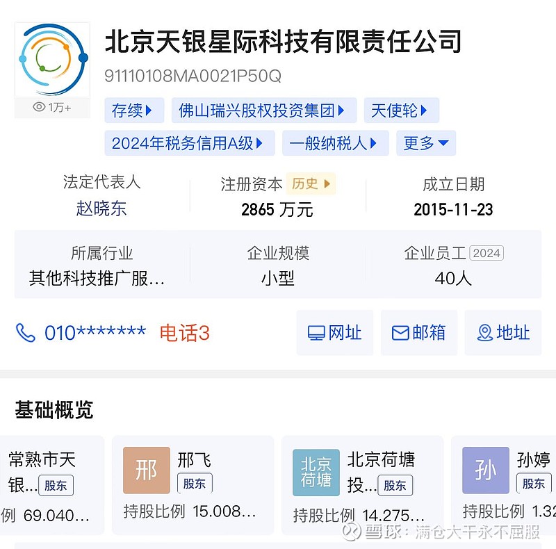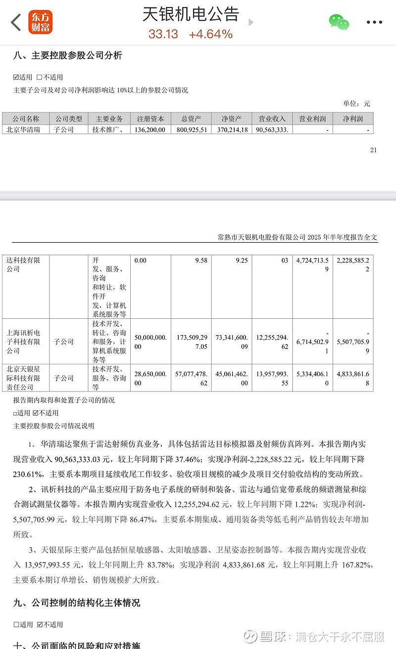 (1)股权方面,天银机电持有天银星际69%的股权。有两个小股东,邢,荷塘投资。
