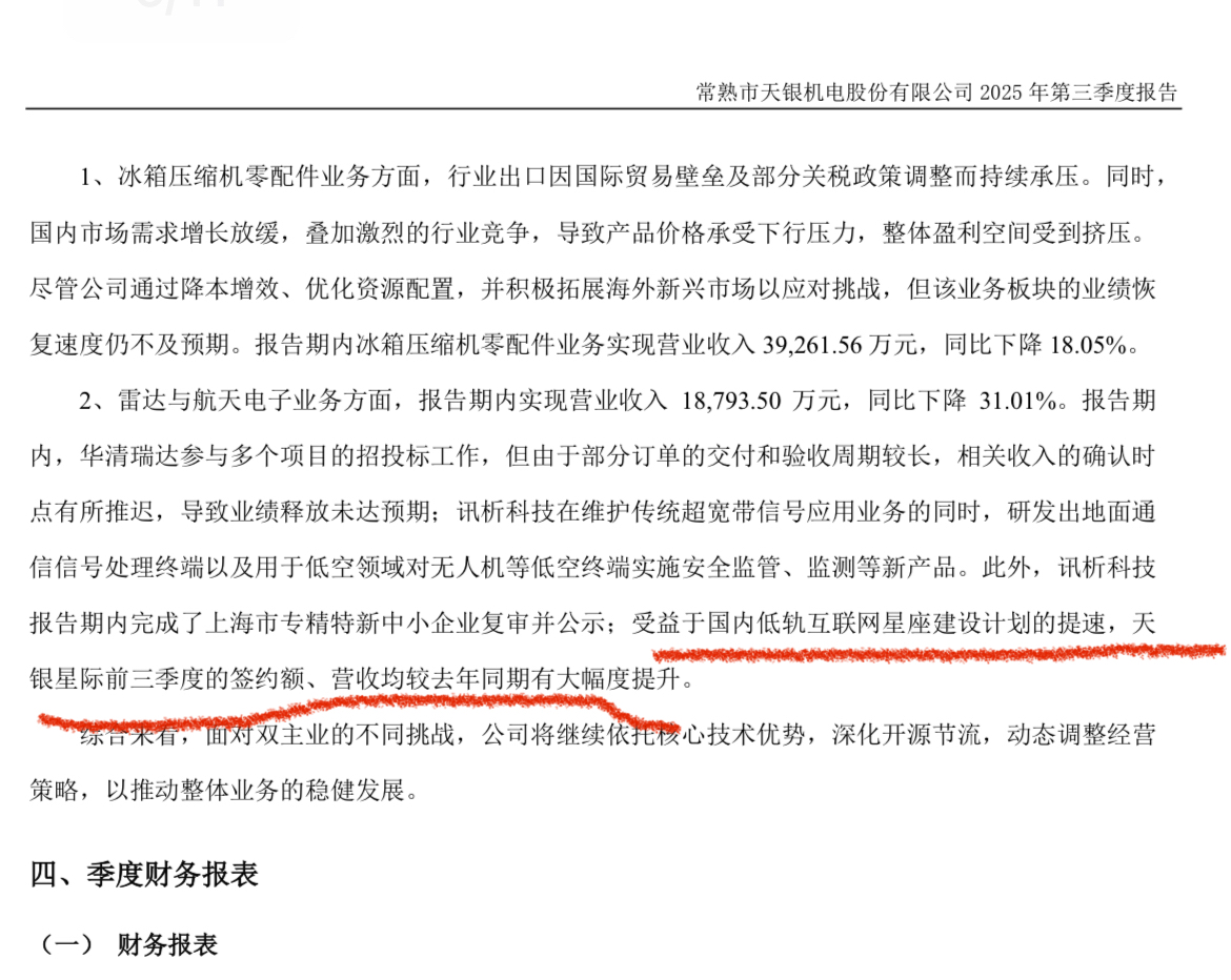 三季报也说了,最新的业绩来自于低轨互联网星座加速,证明了:天银星际实打实的直接受益于商业航天。