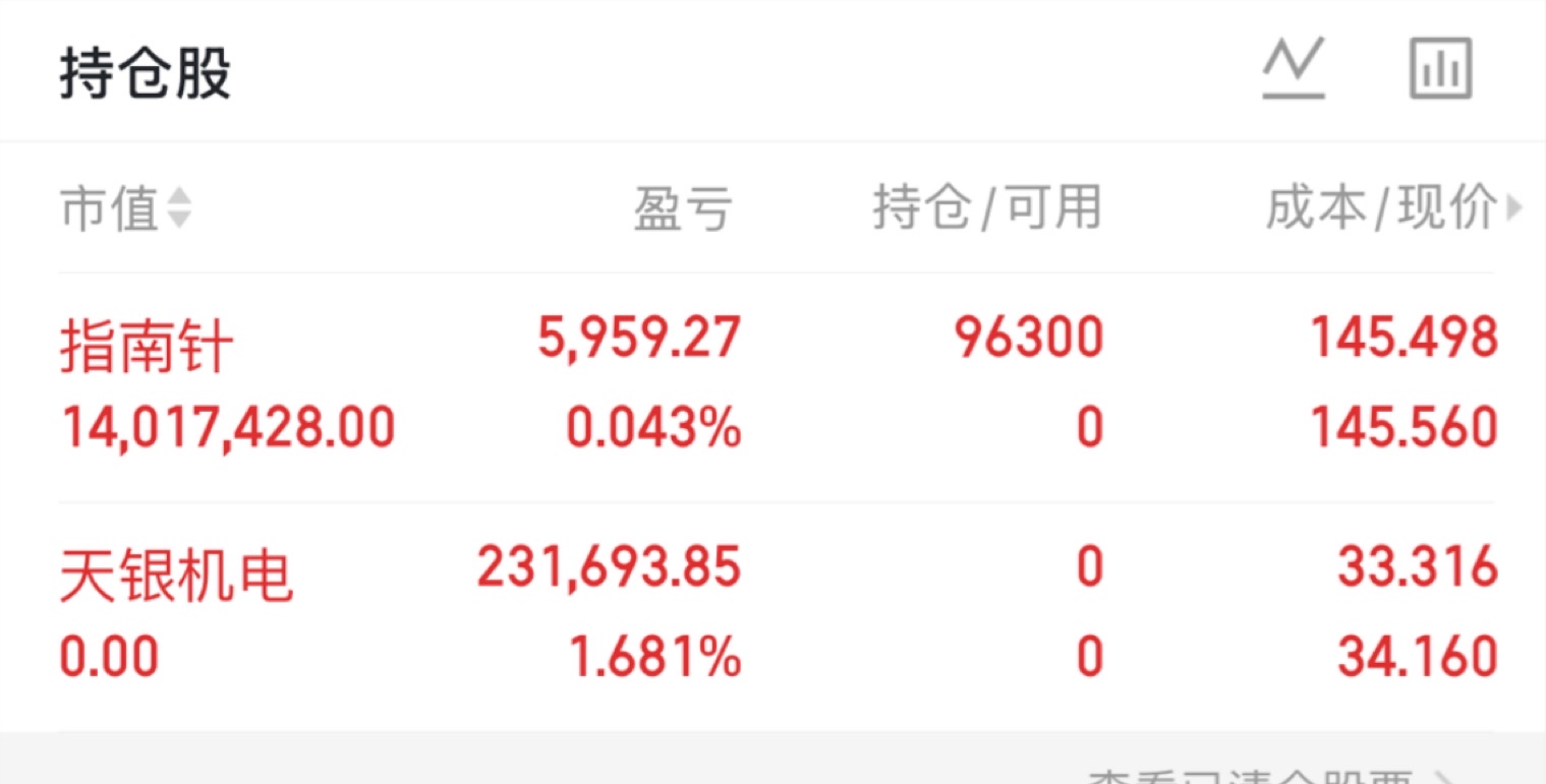 天银机电止赢$天银机电(SZ300342)$ ,全部进了指南针$指南针(SZ300803)$ 祝大家一路长虹