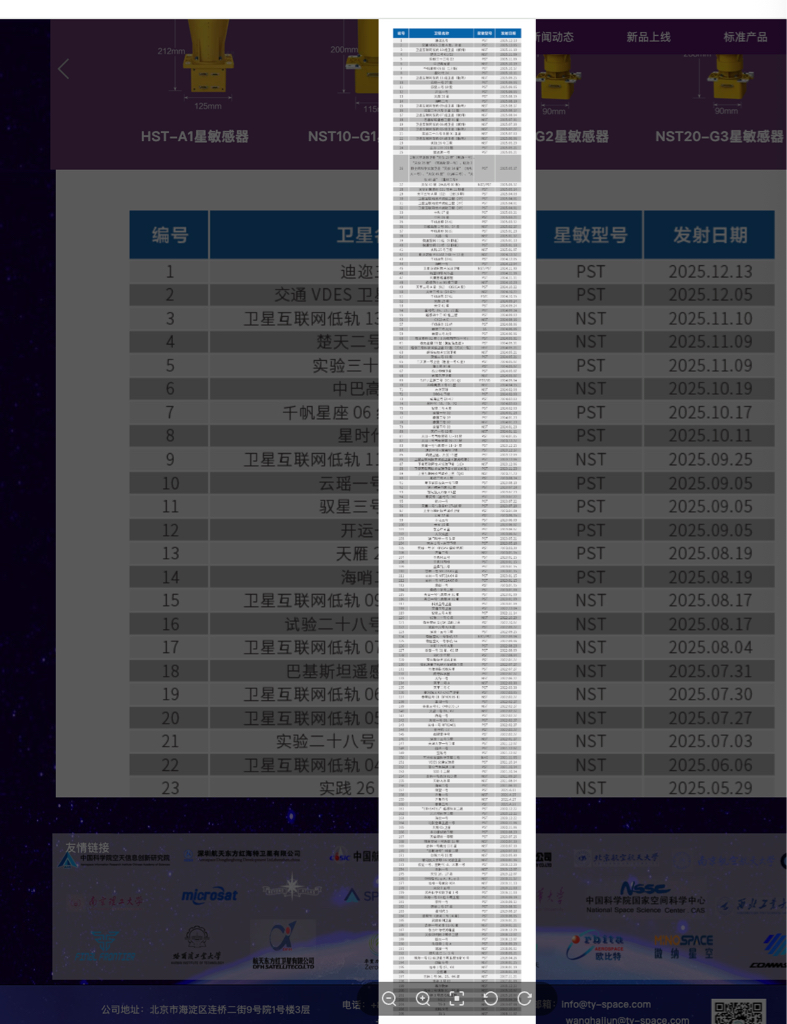 使用天银机电主产星敏感器的卫星,通过卫星可以查到背后合作的公司