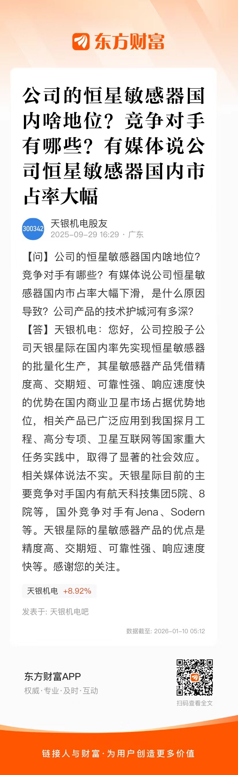综合看来,公司是目前A股唯一可生产星敏感器的,并且已经销往国外。同时,全资控股子