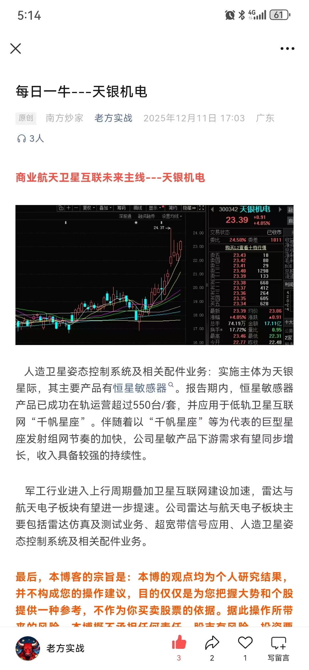 $天银机电(SZ300342)$ 在这里每天一只票,天银机电到现在都涨了1倍多了
