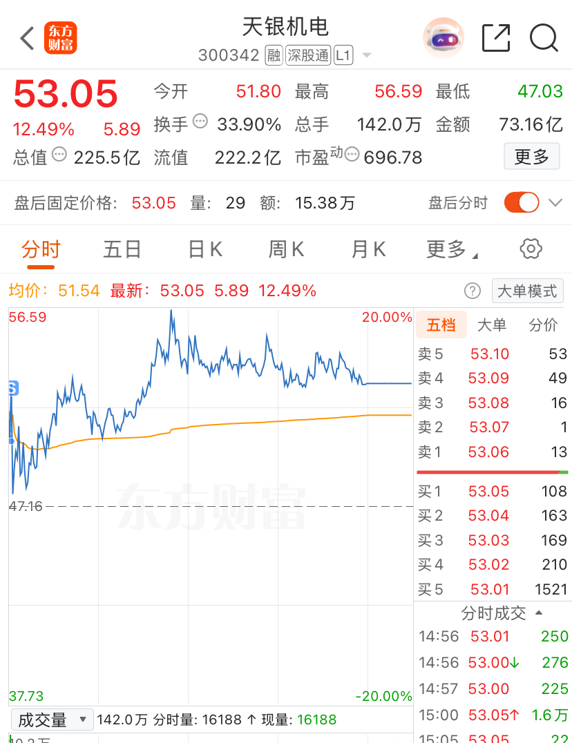 $天银机电(SZ300342)$ 早盘由于板块出现严重分化,天银竞价也是算太强了,就没有考虑卖出,但开盘后急促下杀,最终败给了人性,这段时间操作上高抛低吸算下来也有一倍有余,清仓了也不后悔,由于早盘恐慌一下杀到水下一下又回拉想想还是放弃了,虽然今天卖得不太满意,总体成绩算0 k,有缘下次再会,继续看好天银但我相信你还会倒车回来接人