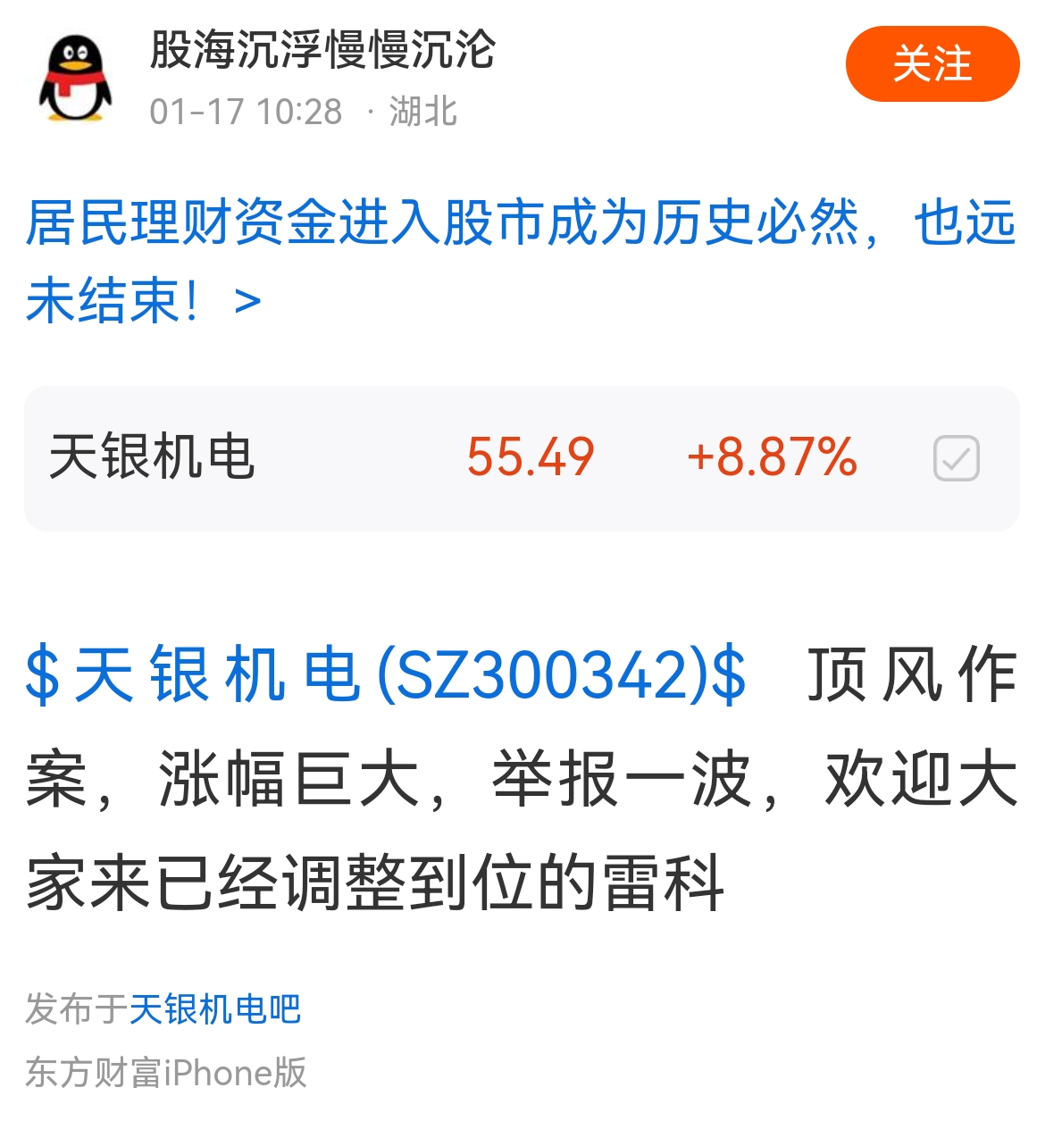 $天银机电(SZ300342)$ 大家其实也不要太在意别人说什么,尤其像这种专门跑来唱空的,大多数都是在别地方亏傻了的,海格 金风里面的人现在很疯狂,别惹他们