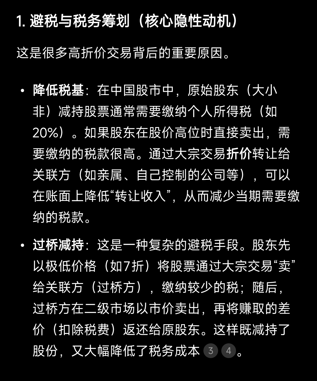 股东折扣大额交易最主要的原因: