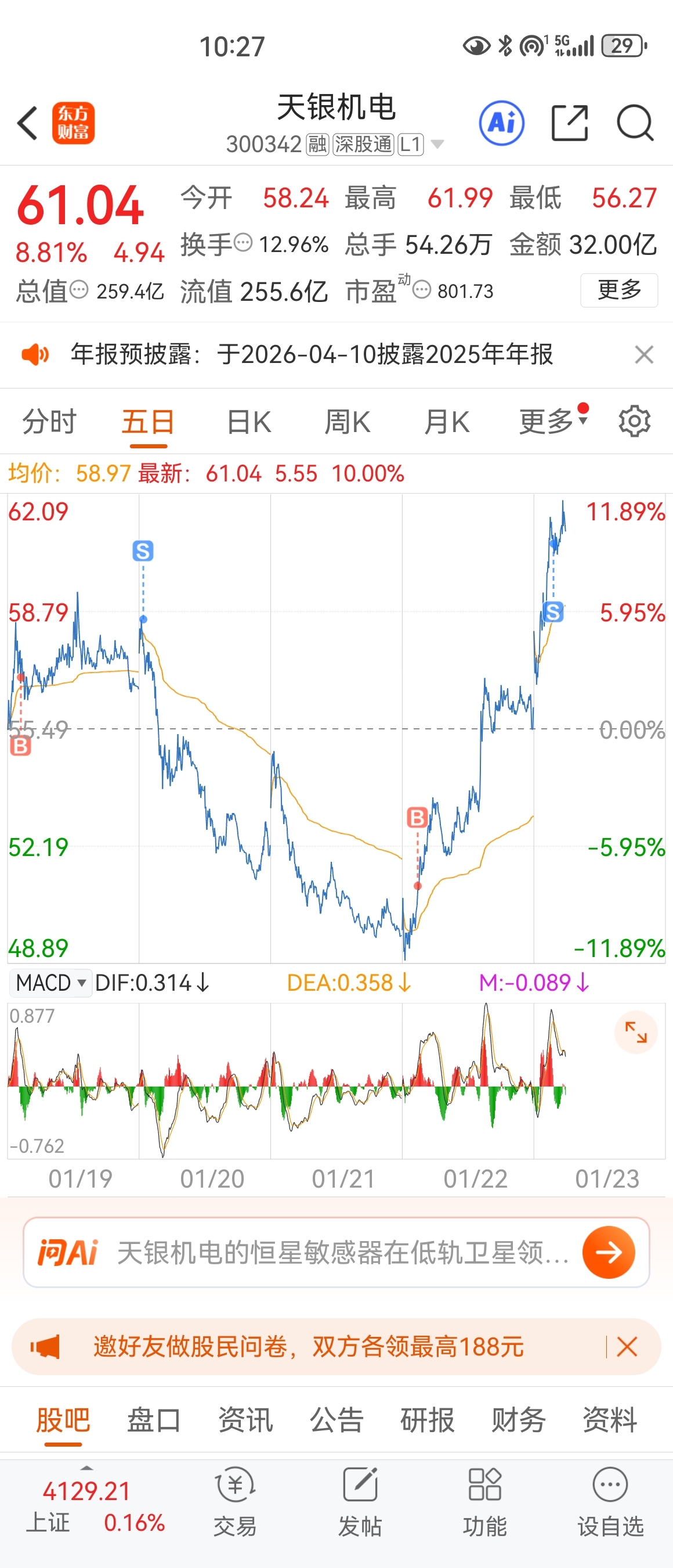 $天银机电(SZ300342)$ 我卖飞了,不过两天18点知足了,剩下兄弟们赚