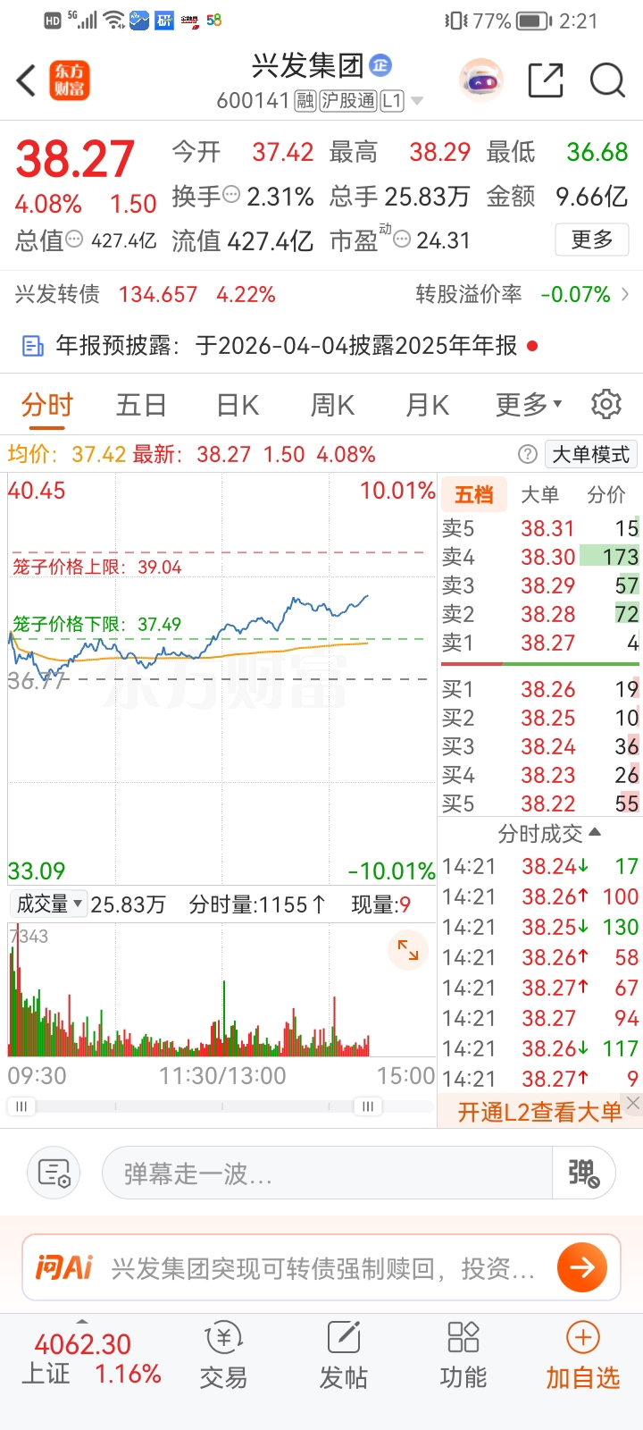 $天银机电(SZ300342)$ 看看兴发集团上涨到顶