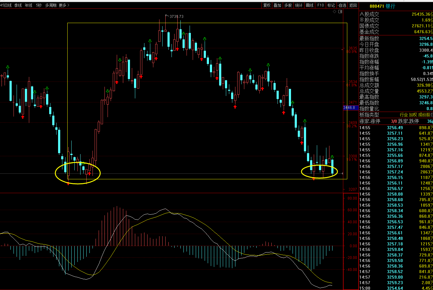银行指数目前通过周线和日线看盘依然是围绕着60周线或者是日线年线横盘进行震荡,周末在文档里面还给大家讲了防御性的板块种子行业以及房地产行业,昨天和今天种子也是领跌的,昨天我在文章里面就讲了种子这些防御性的板块在领跌意味着指数回调即将见底,大家就看到了今天上证指数上涨52个点,昨天说了房地产今天也会止跌企稳大家也看到了今天房地产也是上涨的,白酒后面的行情依然是震荡向上。银行这个位置日K线也可以看成是一个大的双底