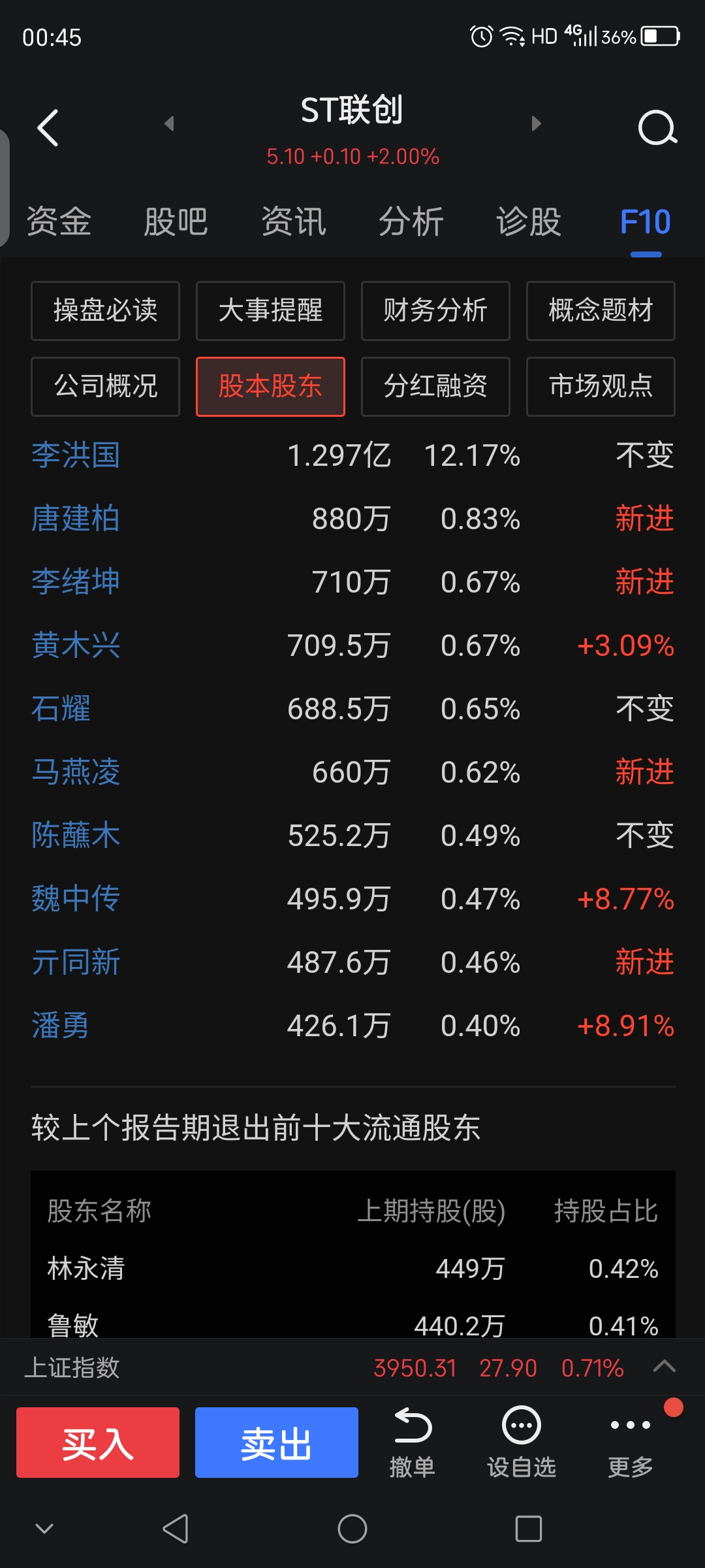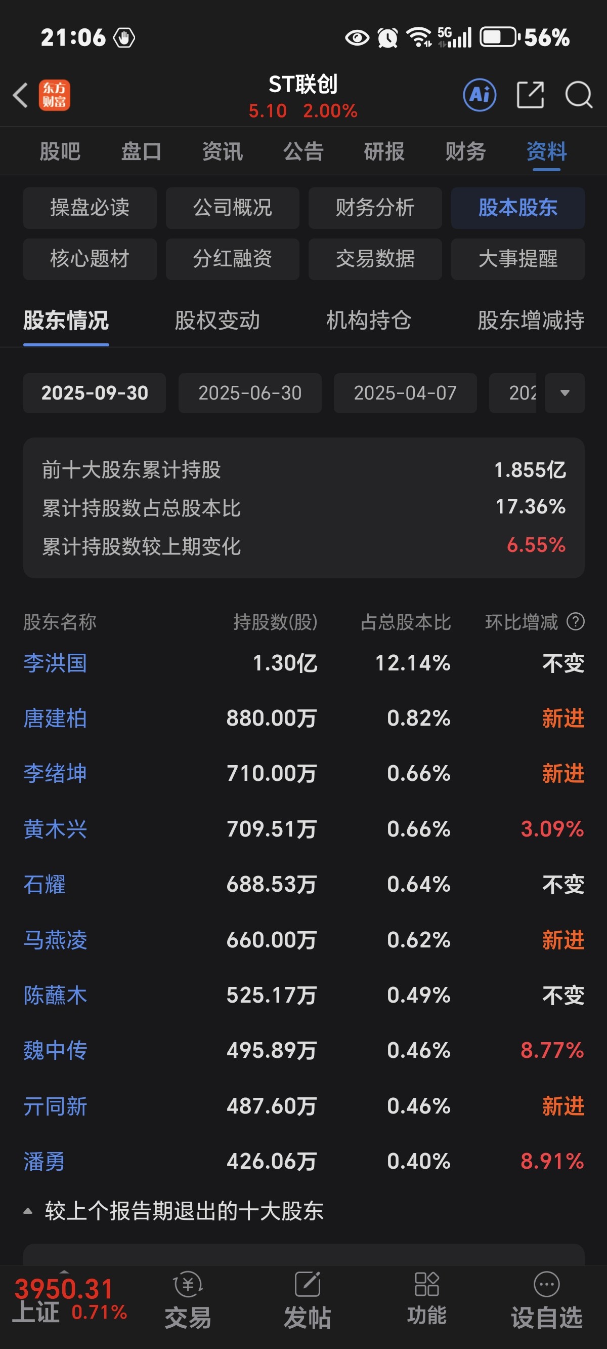 三季报还算可以,可能有人认为不及预期,其实预期是相对于股价来说的,去年同期亏了一千多万,股价还能上七八块这个平台,现在盈利一千多万,股价还在五块,有什么可担心的。真正的亮点是十大里面又新进了几个牛散,而且原来的一个都不跑,还在加仓,他们都是拥有过亿财产的大佬,能力和见识肯定在我们小散之上,他们都不怕,我们还跑什么?联创的预期还在而且越来越近,洗盘那么久,未来肯定会有一波的,只是我们无法判断庄和主力是到时再拉还是现在就拉,所以做好应对即可,至于短线博弈那就看各自的运气了。