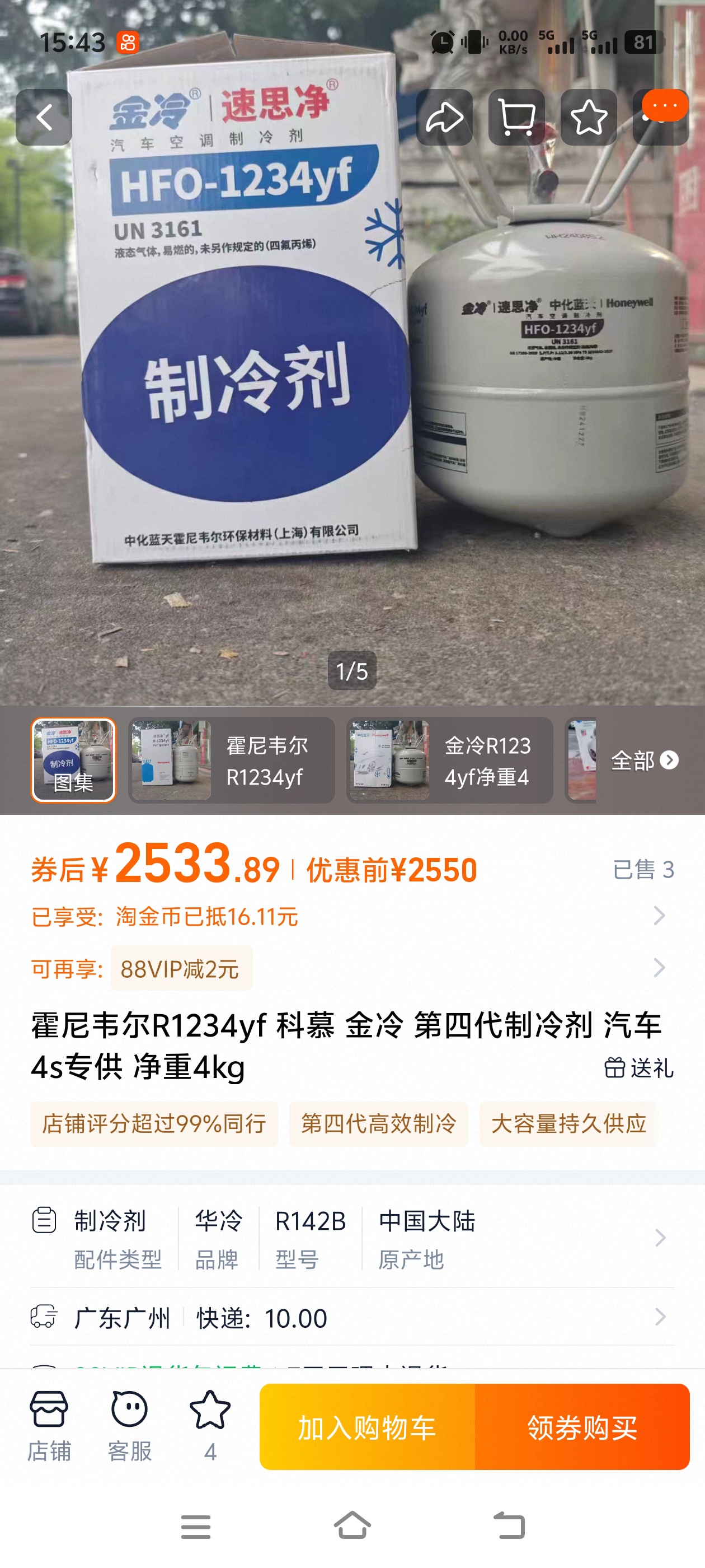 $ST联创(SZ300343)$ 有没有人知道联创股份的第四代制冷剂上市了没?淘宝没看到零售。霍尼韦尔的制冷剂4kg卖2500,单价还挺高的