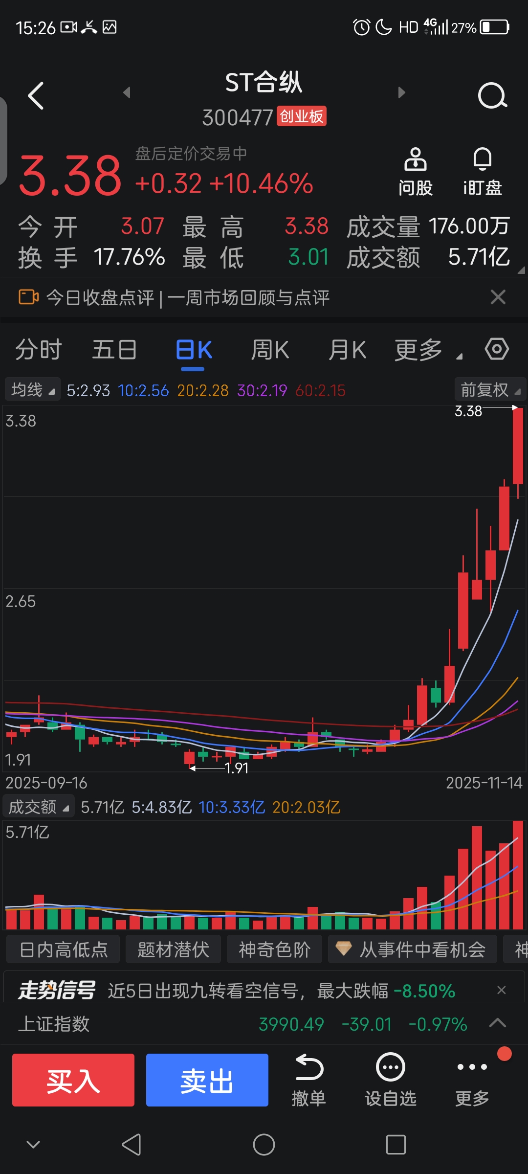 不知道咋想的,底部洗盘大半年,行情刚启动就有一堆人被洗下车,长上影线是创业板st