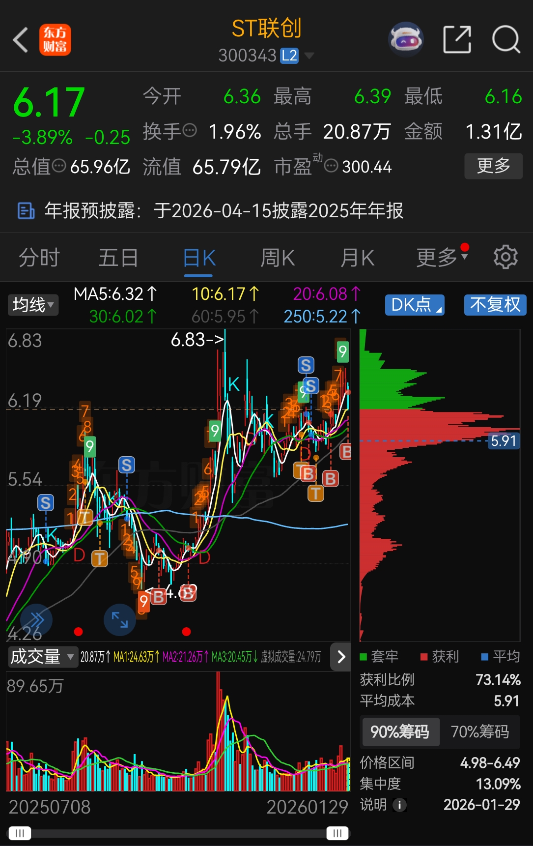 $ST联创(SZ300343)$ 你牛逼,从5日线直接砸到10日线,要出预告了吗?明天不是大涨就是大跌!!!