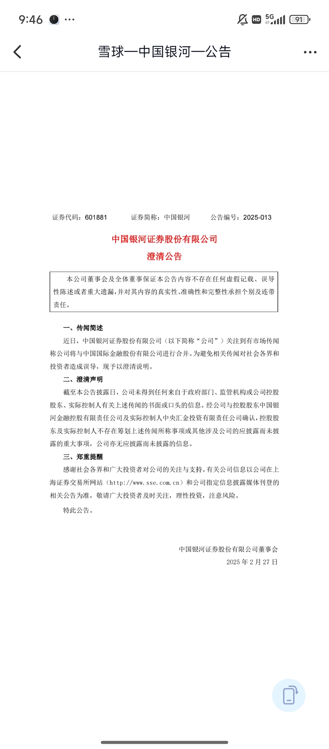 完了,澄清了,明天一字跌停