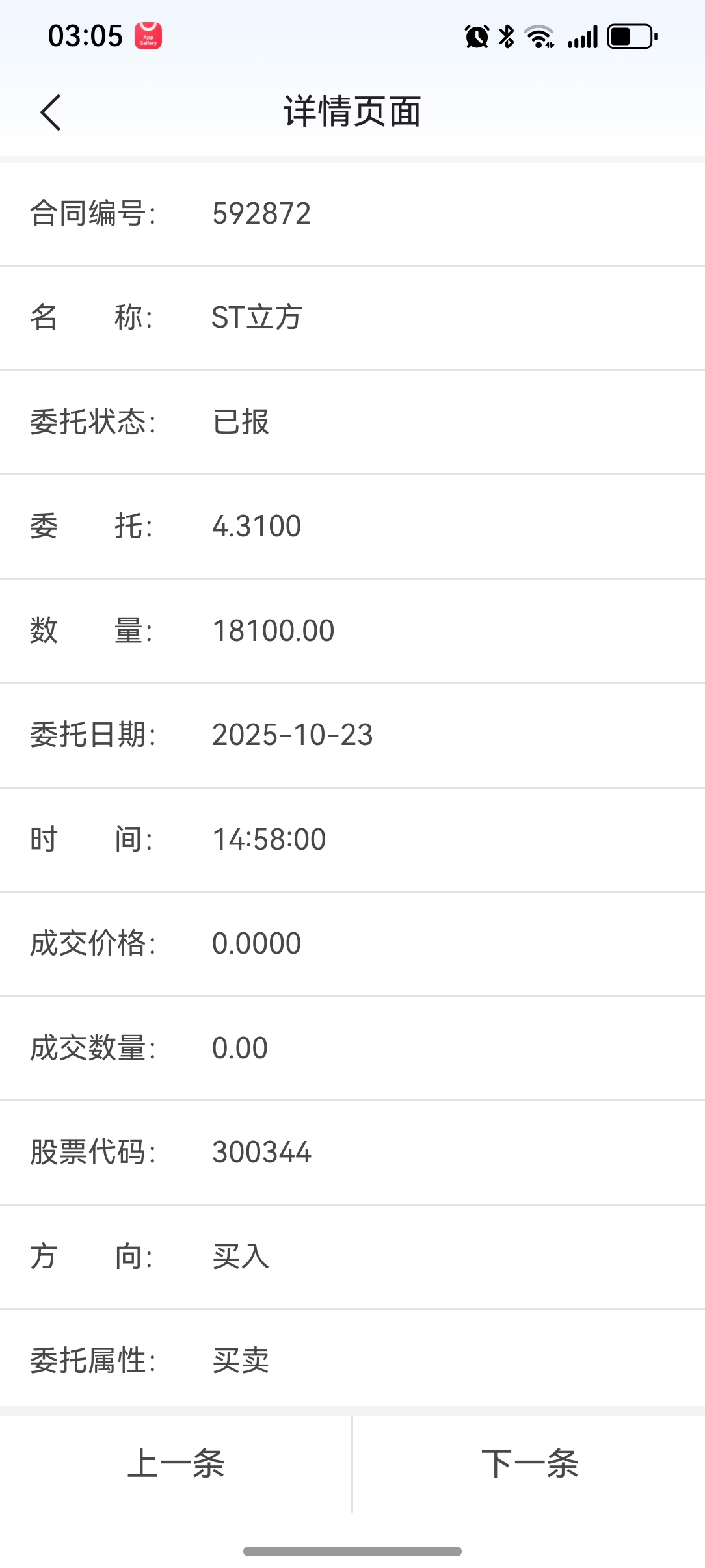 $ST立方(SZ300344)$ 竞价还没买到,没有成交。
