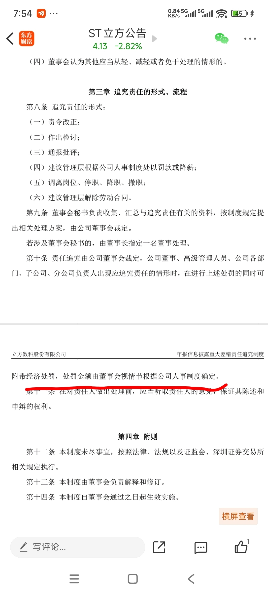 $ST立方(SZ300344)$ 这么多公告就这个重要,年报信息披露重大差错责任追究,罚多少钱还是董事会决定,这就相当于内部小错误,口头批评,形式上罚一点,压着半年不涨,也把十大股东几个外资熬出去了,接下来樊立的股票重整,拍卖流拍走个形式,还是国资委接手的,再发布正式收购云掌柜落实到位,这个票也该回归正常价位了,基本上前期看到7-8块,明年回到10-12块位置。