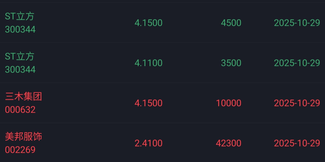 $ST立方(SZ300344)$ 昨天亏了一千多把立方割了,换了三木集团跟美邦服饰,没想到美邦服饰今天来个涨停,把立方亏得又赚回来了,这个股暂时不进了,等立案出结果在回来吧。