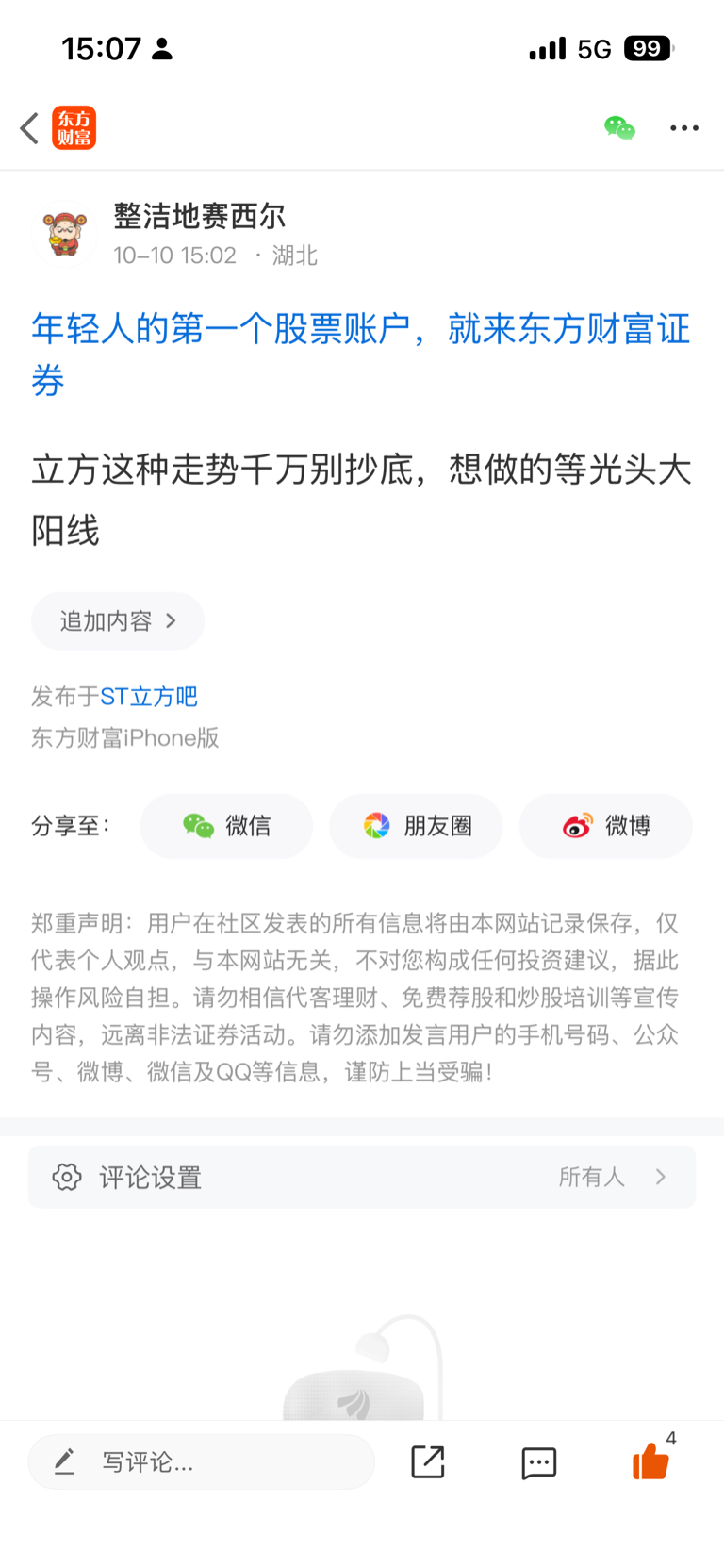 温馨提示: 1.根据《证券法》规定,禁止编造、传播虚假信息或者误导性信息,扰乱证券市场;2.用户在本社区发表的所有资料、言论等仅代表个人观点,与本网站立场无关,不对您构成任何投资建议。用户应基于自己的独立判断,自行决定证券投资并承担相应风险。《东方财富社区管理规定》