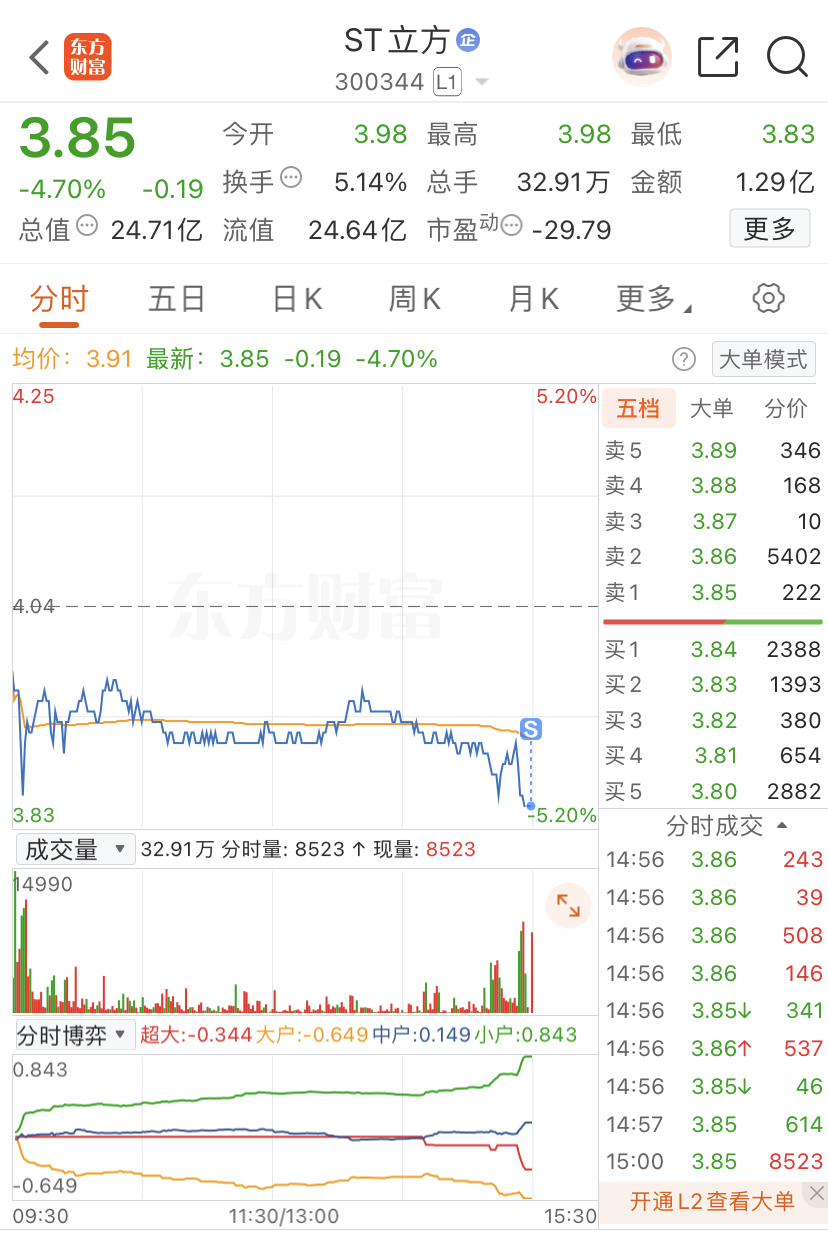 $ST立方(SZ300344)$ 清仓认输 销户不玩了