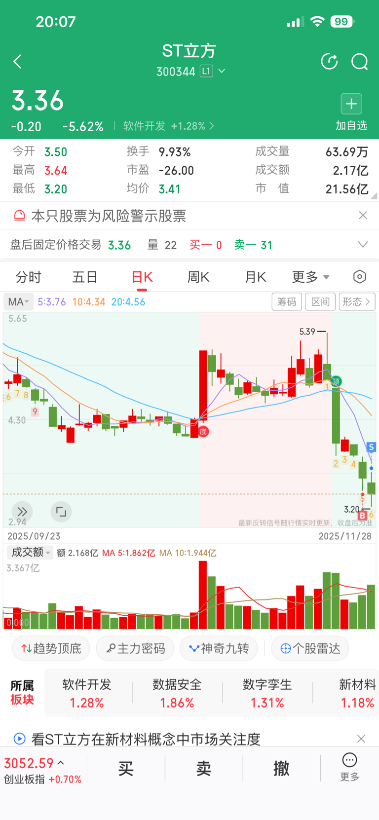 $ST立方(SZ300344)$ 还好早盘冲高出了