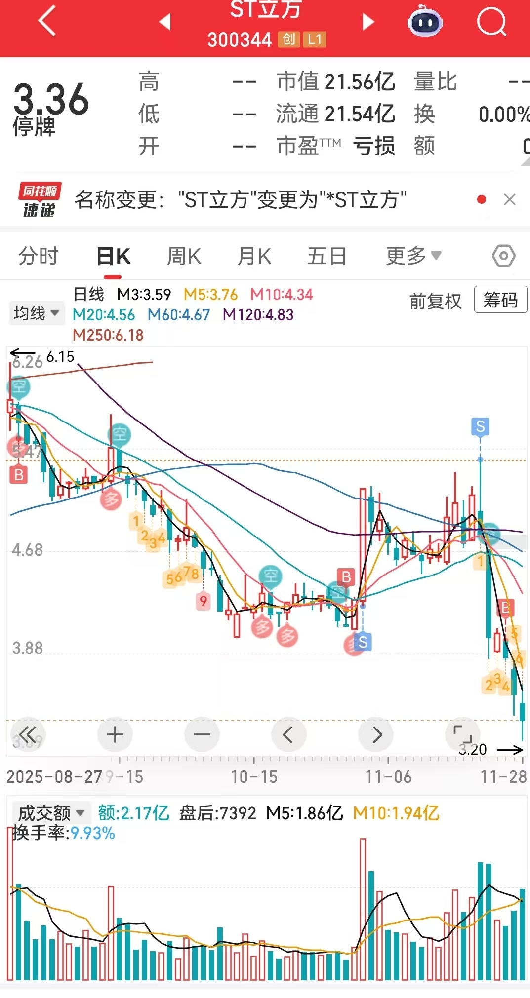 $ST立方(SZ300344)$ 本来最高点减的只留底仓了,后面手贱又补了重仓。这下好了明天看谁跑得快