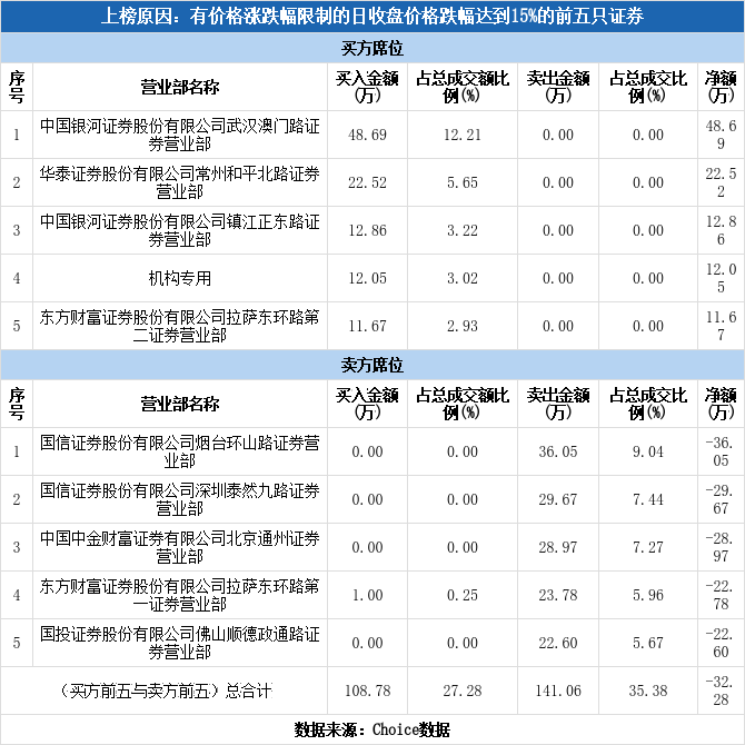 机构现身龙虎榜,*ST立方跌停(12-02)