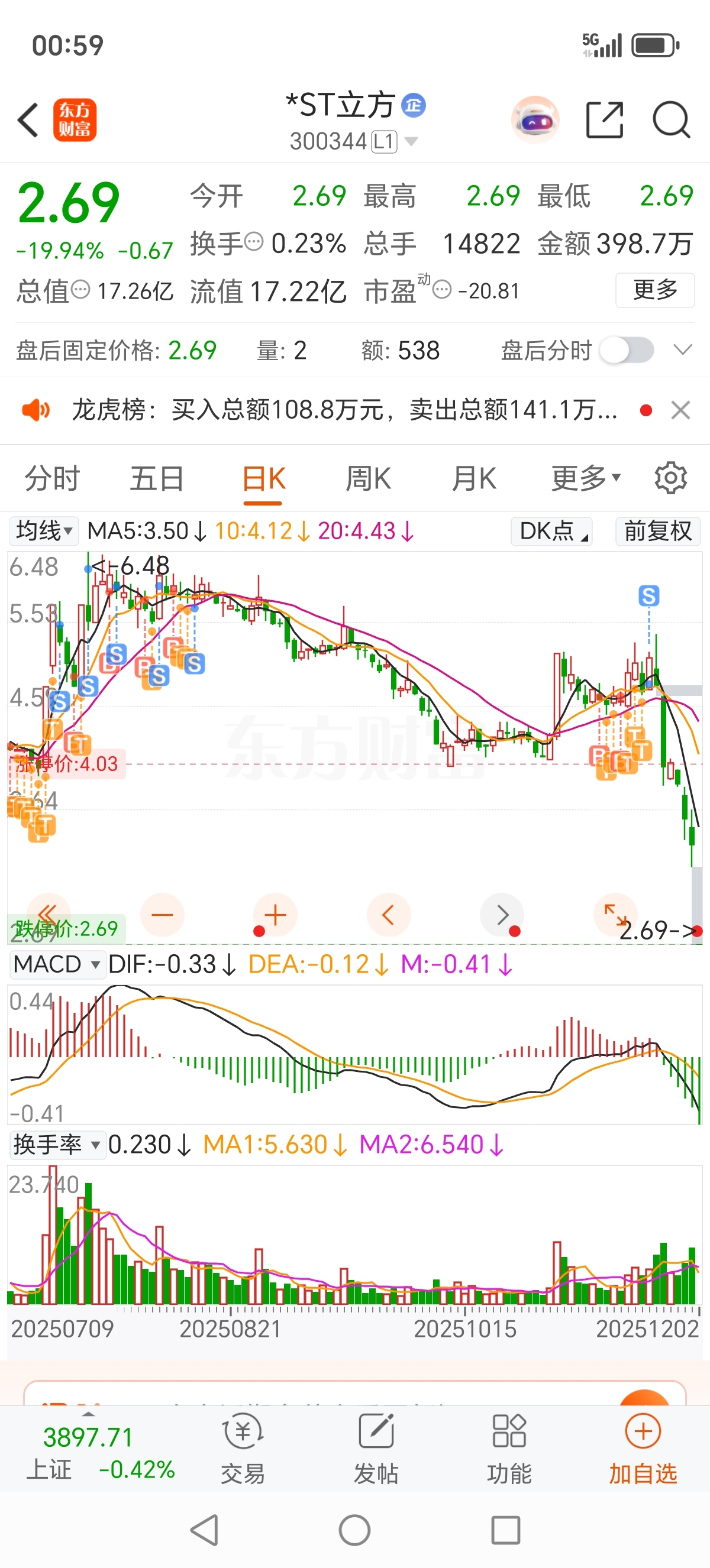 $*ST立方(SZ300344)$ 我是走了运了