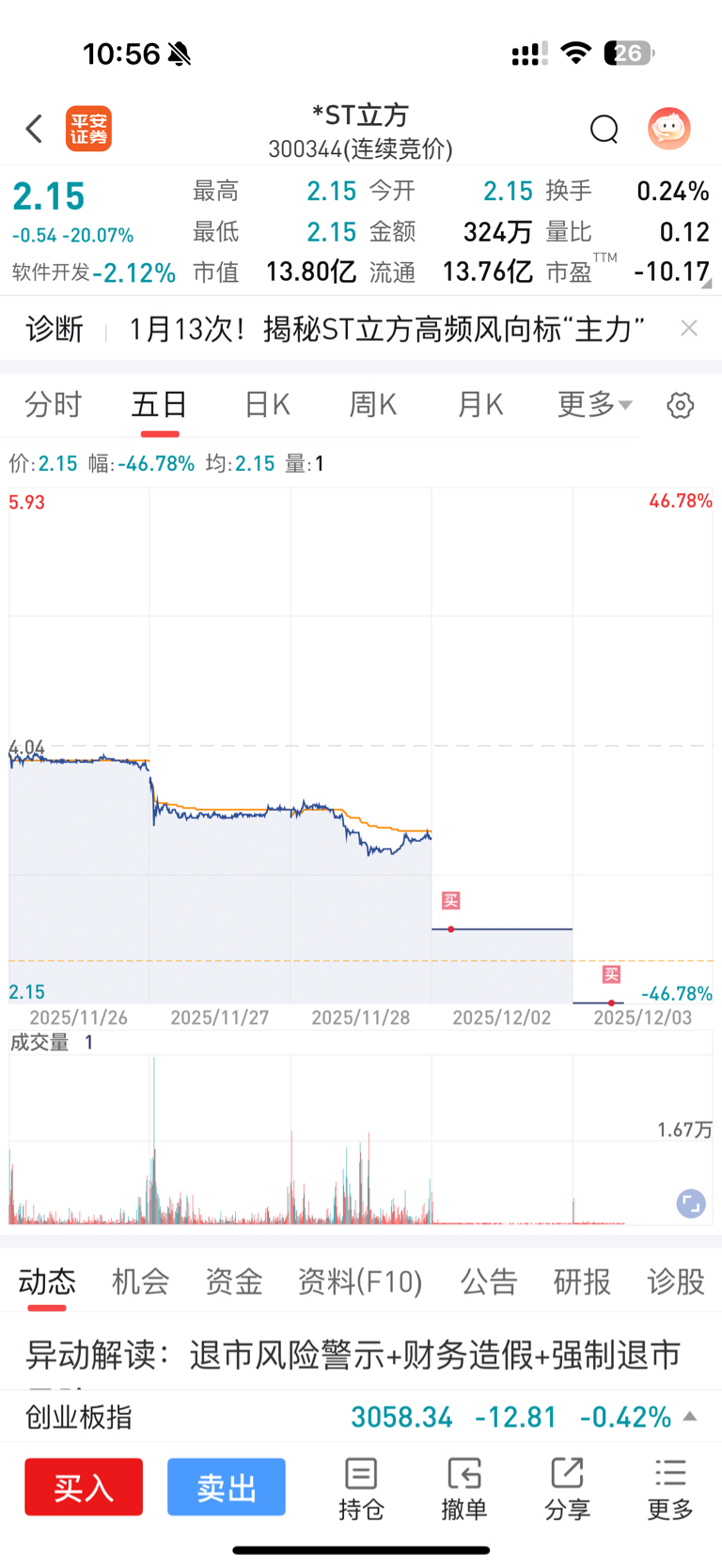 兄弟们,连续两天买入st立方,我已经尽力了,