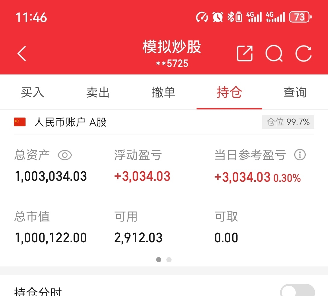 $*ST立方(SZ300344)$ 这是我同花顺模拟炒股的截图,有人把最上边几个字戒掉了,发帖哄骗戏耍散户,很多人看到有人民币账户几个字,以为是真实持仓,不要上当了
