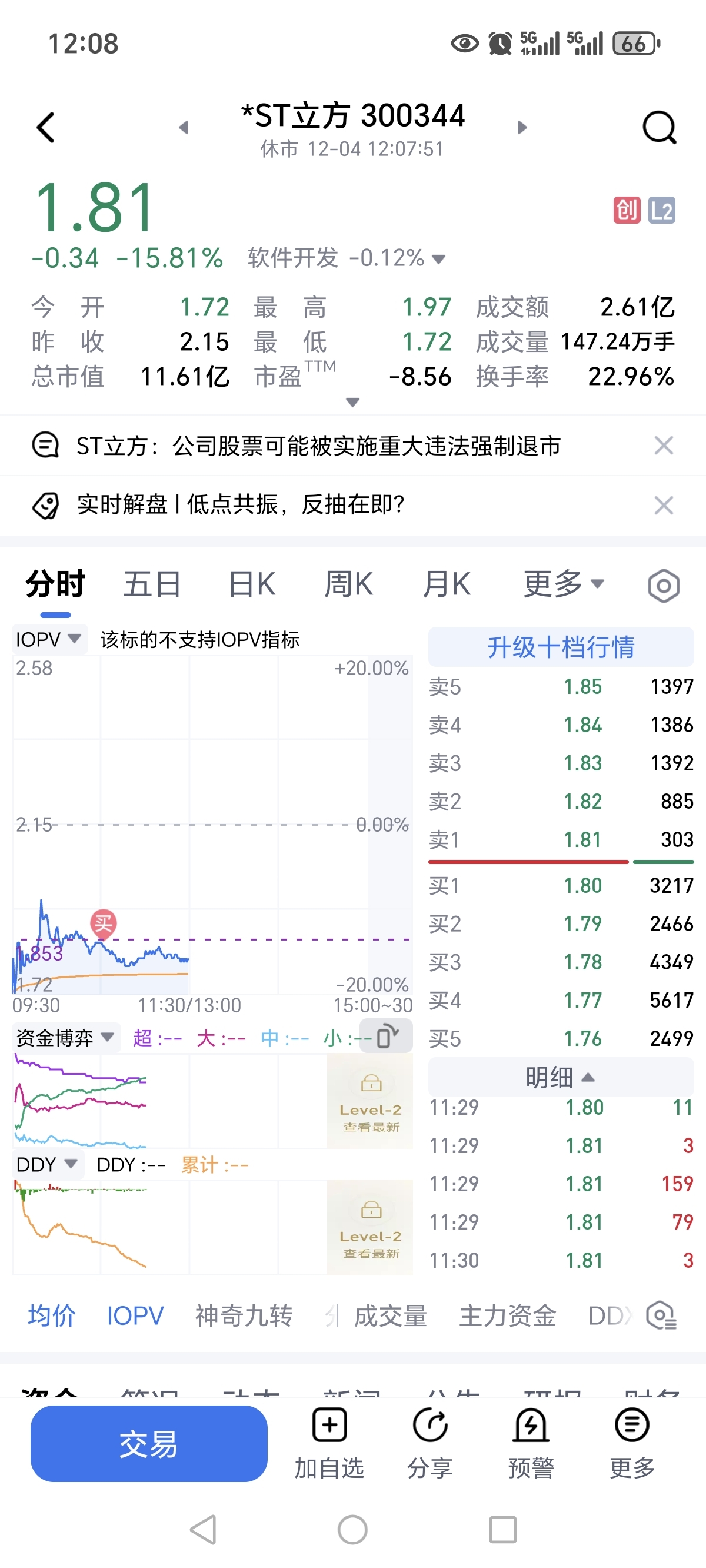 $*ST立方(SZ300344)$ 我来了,买了60手玩玩