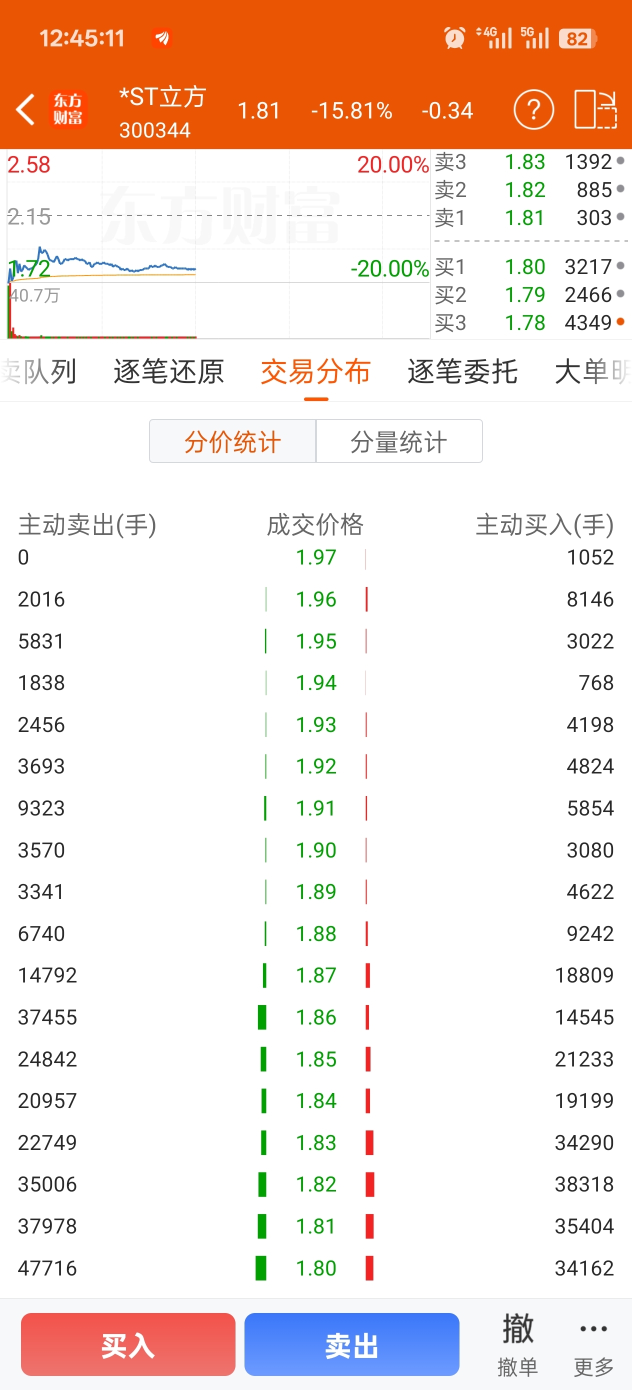 $*ST立方(SZ300344)$ 等等尾盘跌停了再卖。。。。