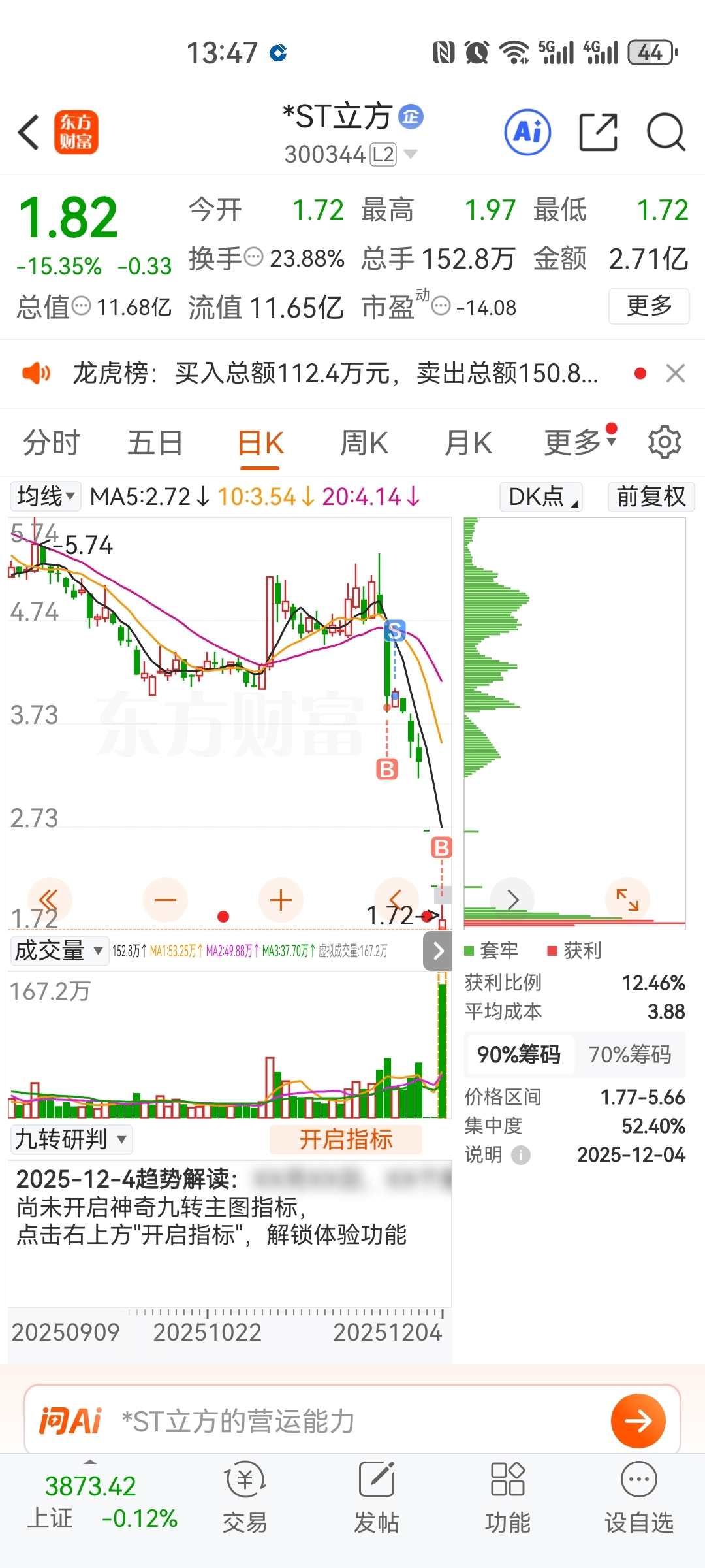 $*ST立方(SZ300344)$ 上次逃过一劫,不知道这一次能不能赚一点
