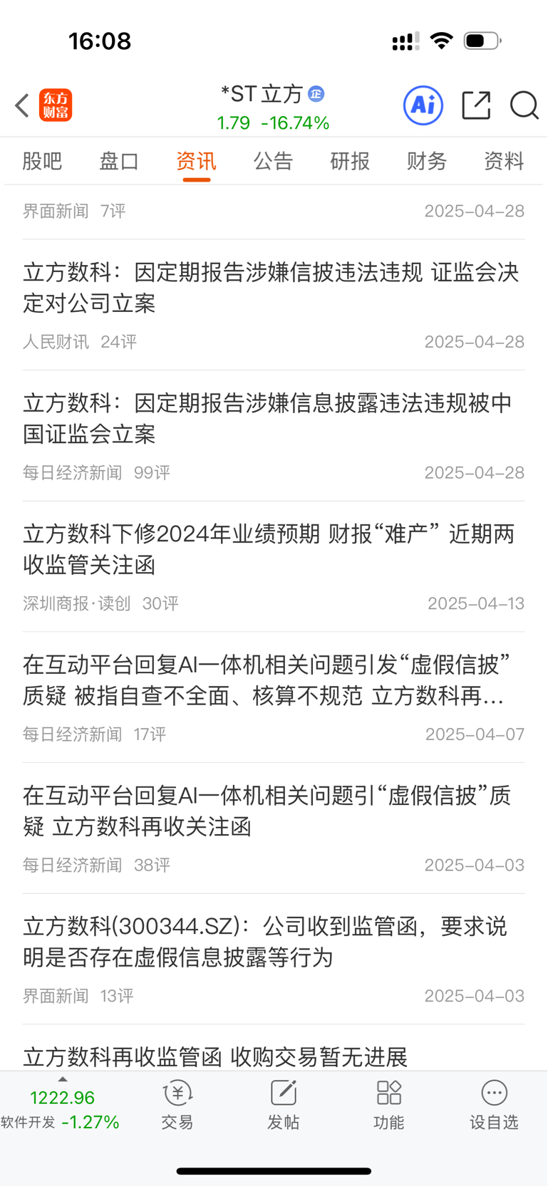 $*ST立方(SZ300344)$ 这个立案结果什么时候出来,结果出来还要有一个跌停!