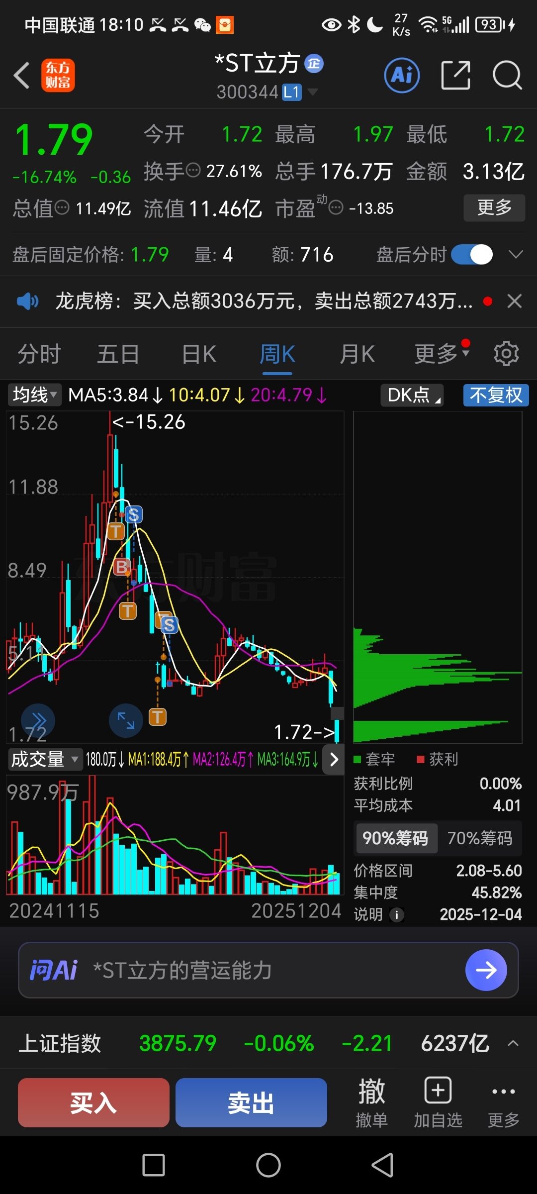 $*ST立方(SZ300344)$ 几个月前买过这个股,突然间立案调查,可让这个股坑够呛,这要是拿到现在,死的心都有。
