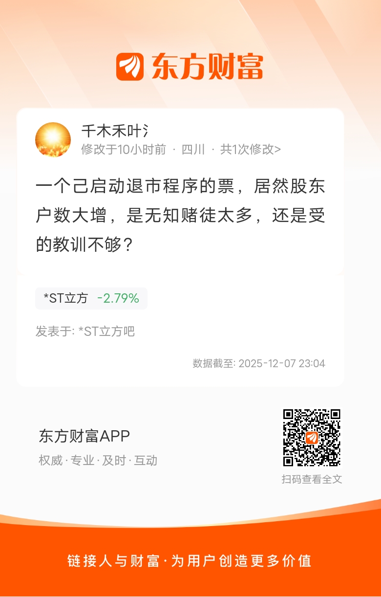 一个己启动退市程序的票,居然股东户数大增,是无知赌徒太多,还是受的教训不够?
