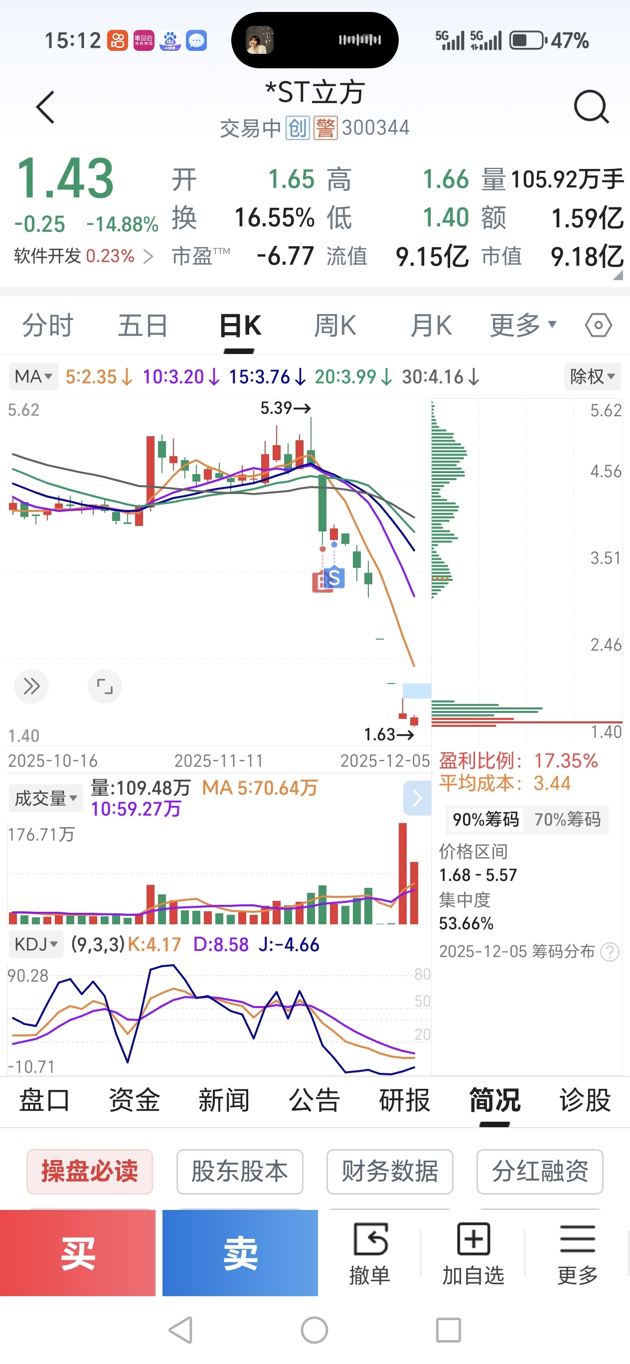 $*ST立方(SZ300344)$ 回头看看吓一跳短短半个月 五元 就剩1块多点