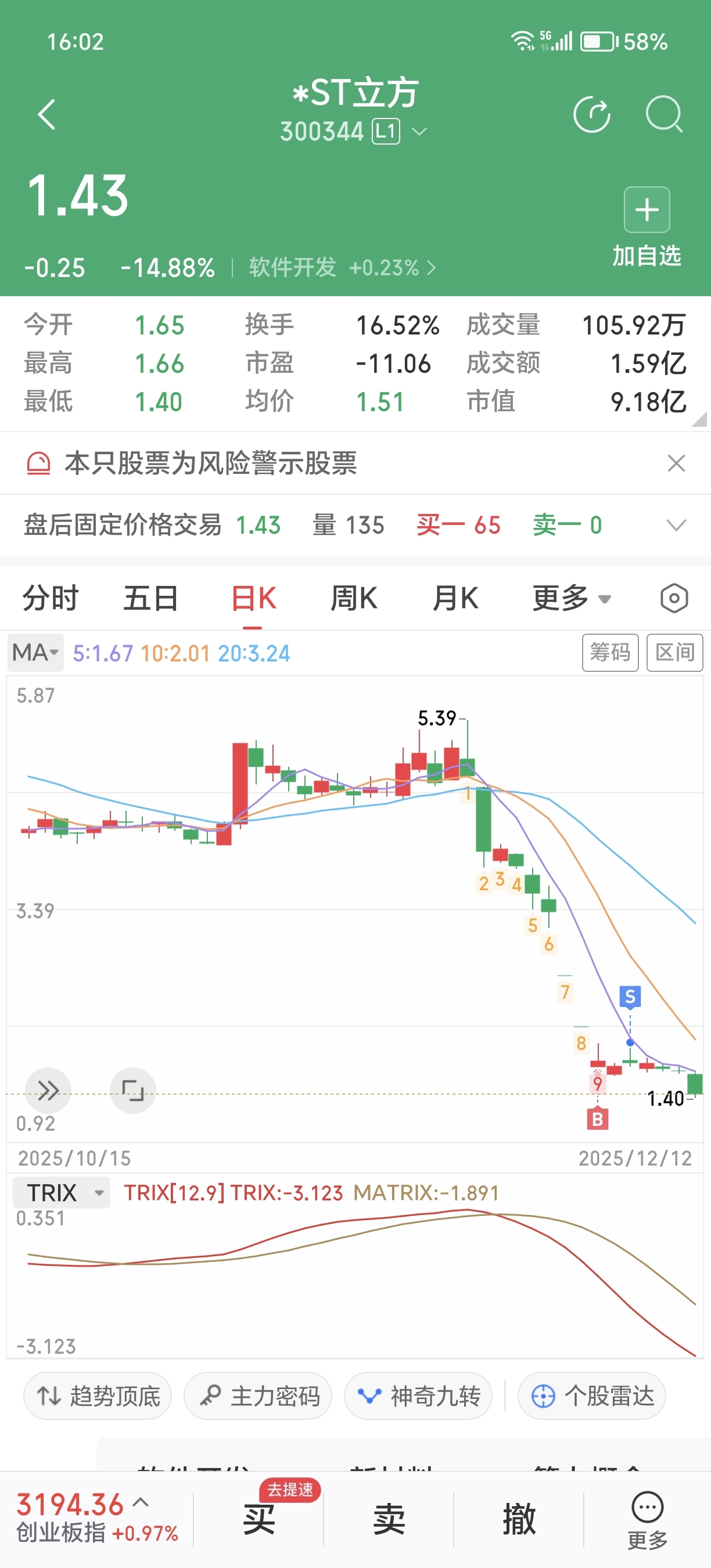 $*ST立方(SZ300344)$ 吃一嘴就跑,这股不宜久留。