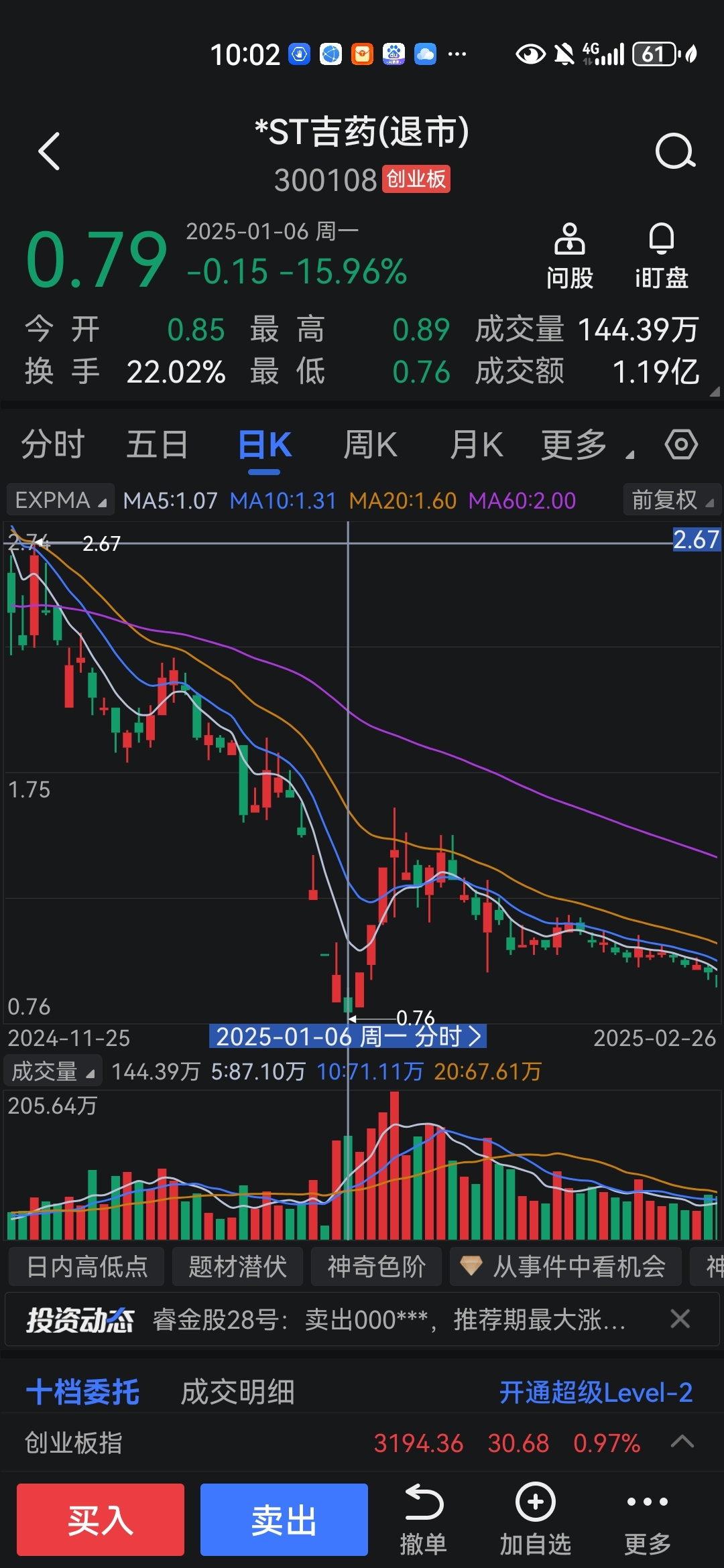 复盘看了每年12月底一月初,创业板总有一个退市翻倍龙,之前的左江和吉药都是这个时