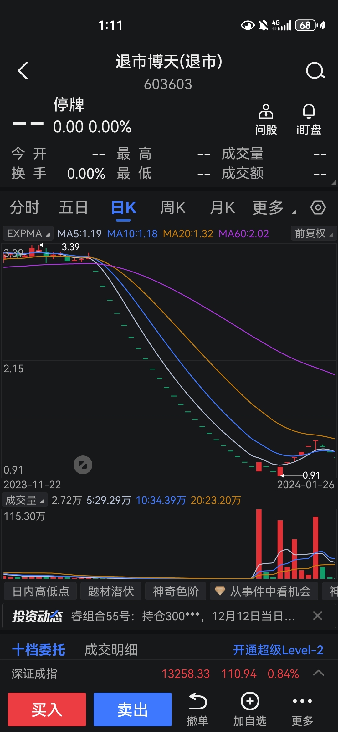 复盘又发现一个违法退市的,博天从3.39到0.91开始反弹,立方从5.39到1.