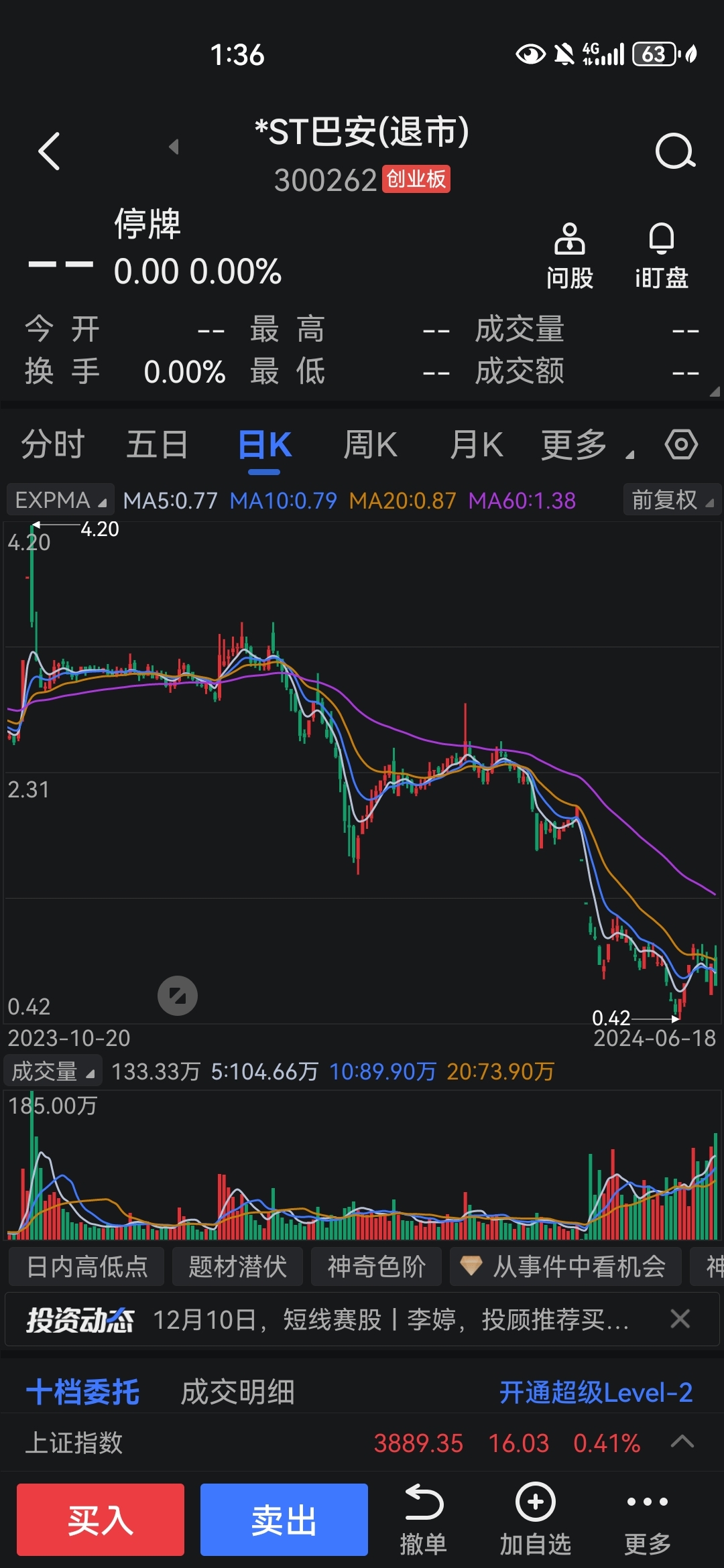 复盘又发现一个巴安,也是4.2到0.42跌幅10左右,立方跌幅还是比这个深