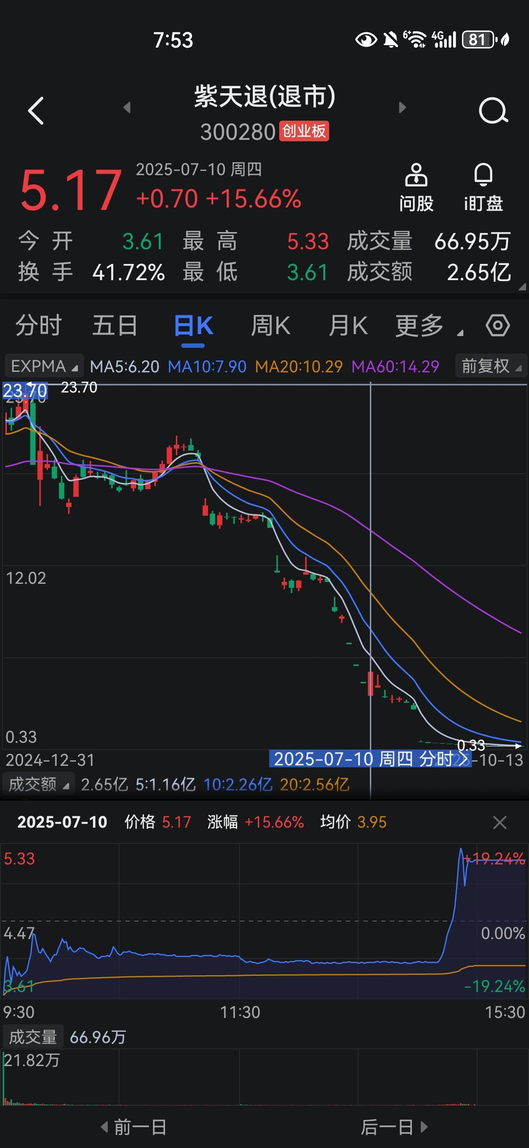 当时有参与紫天那波,3.61买第二天4.98卖出的吗,两天就弄了30多个点也可以