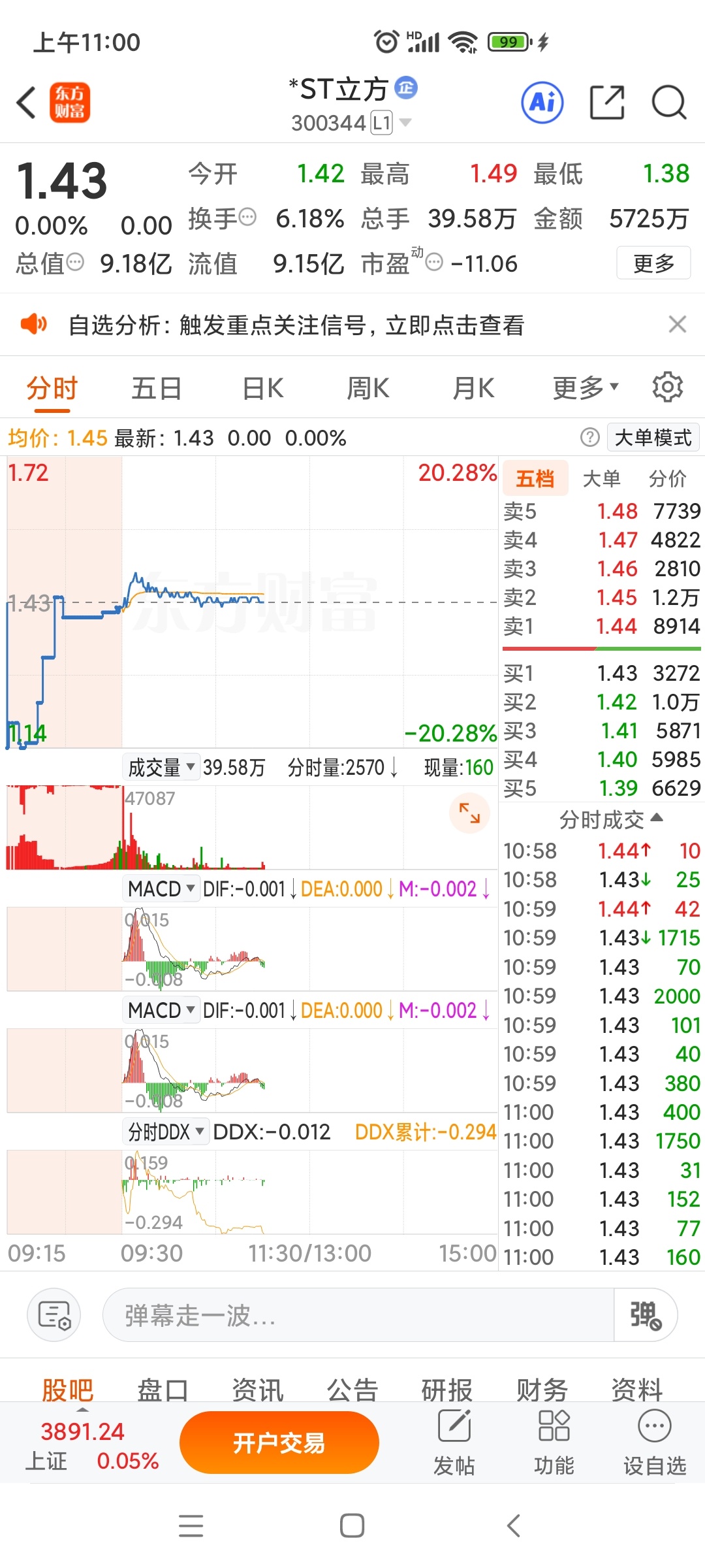 $*ST立方(SZ300344)$ 离退市还早着呢,打到1.14元,游资就会进来抢反弹,只少拉2个涨停板!